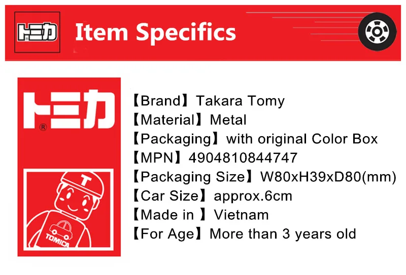 Номер товара. : 4904810844747 Производитель: TAKARATOMY Бренд: Tomica Размер посылка: W78 x H78 x D40 мм Целевой возраст: 3 года ~