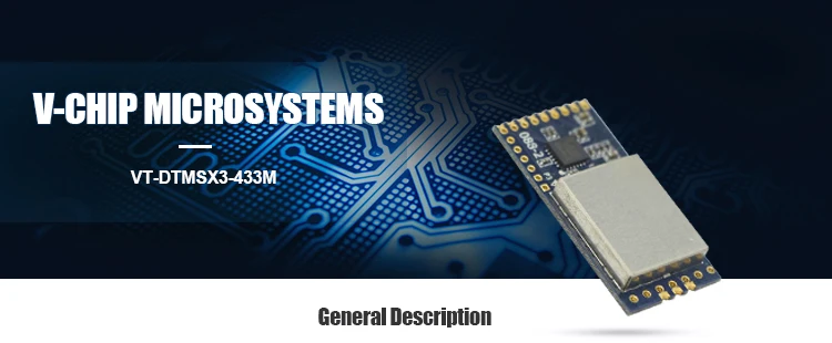 Модуль VT-DTMSX3-433M разработан как беспроводной модуль для беспроводной связи между устройствами, такими как элементы управления, POS системы, коллекторы данных и т. Д., который основан на высокопроизводительном чипе TI CC112x, интегрированный 32 бит ARM Energy Micro Cortex-M3. Чип промышленного класса и высокопроизводительный трансивер были интегрированы на модуле RF небольшого размера.