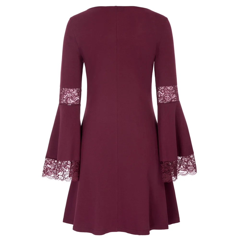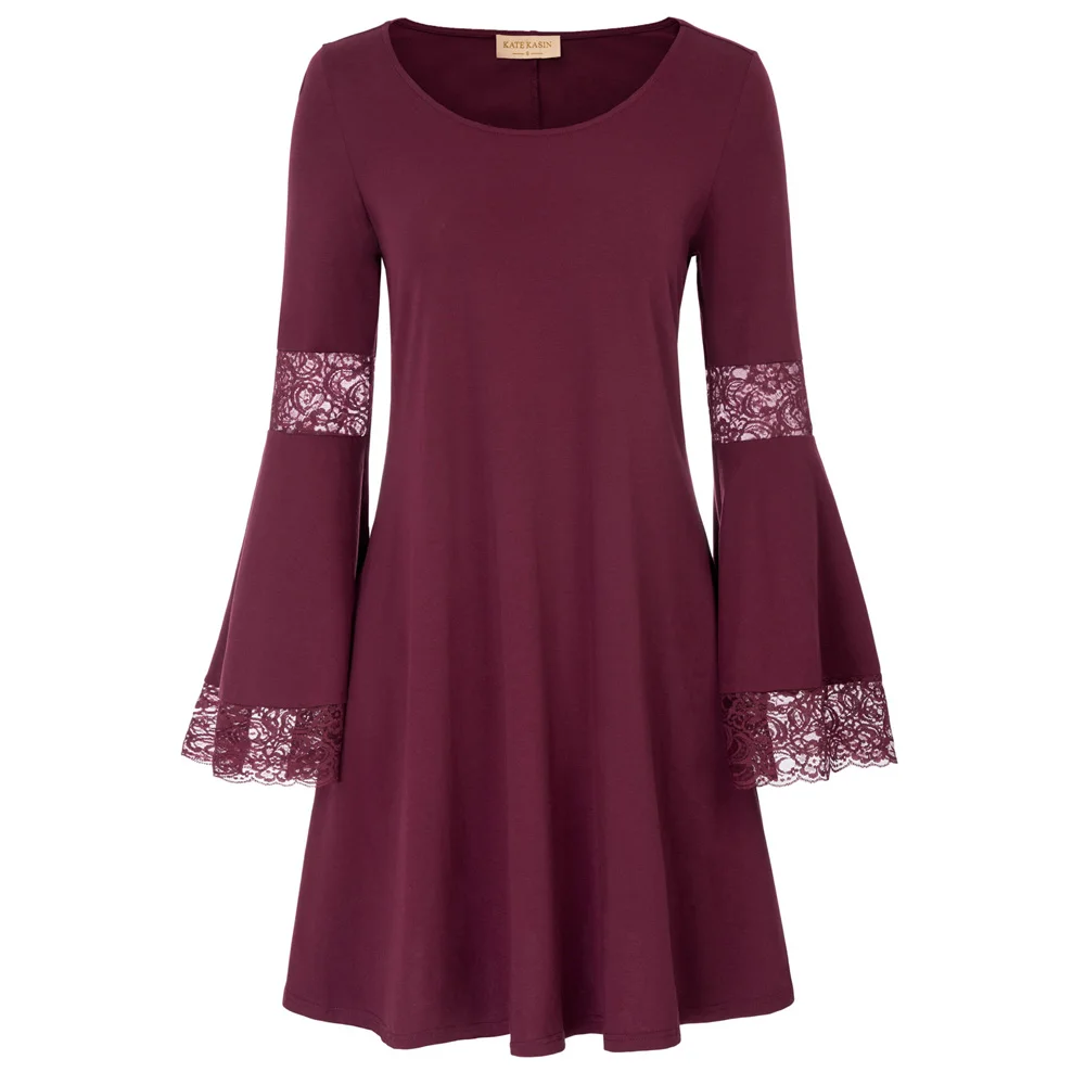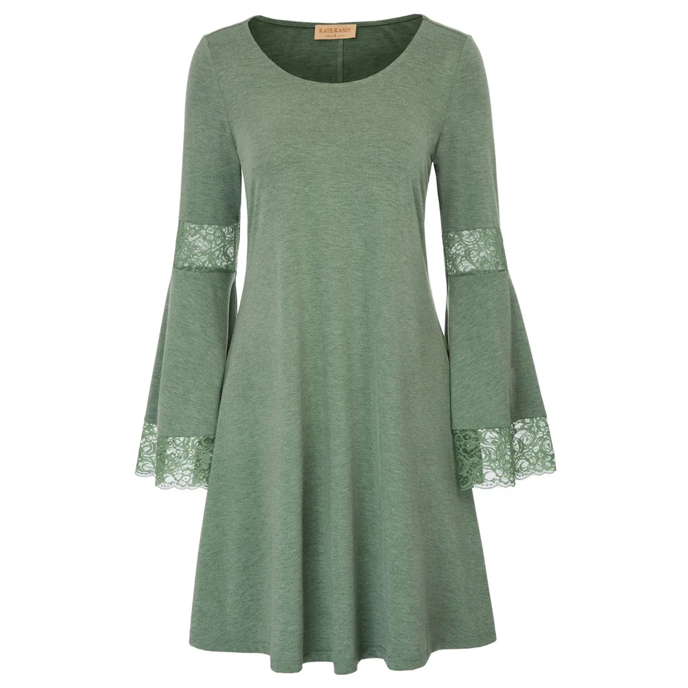 Платье Черный Круглый шеи хлопок пуловер с длинными рукавами