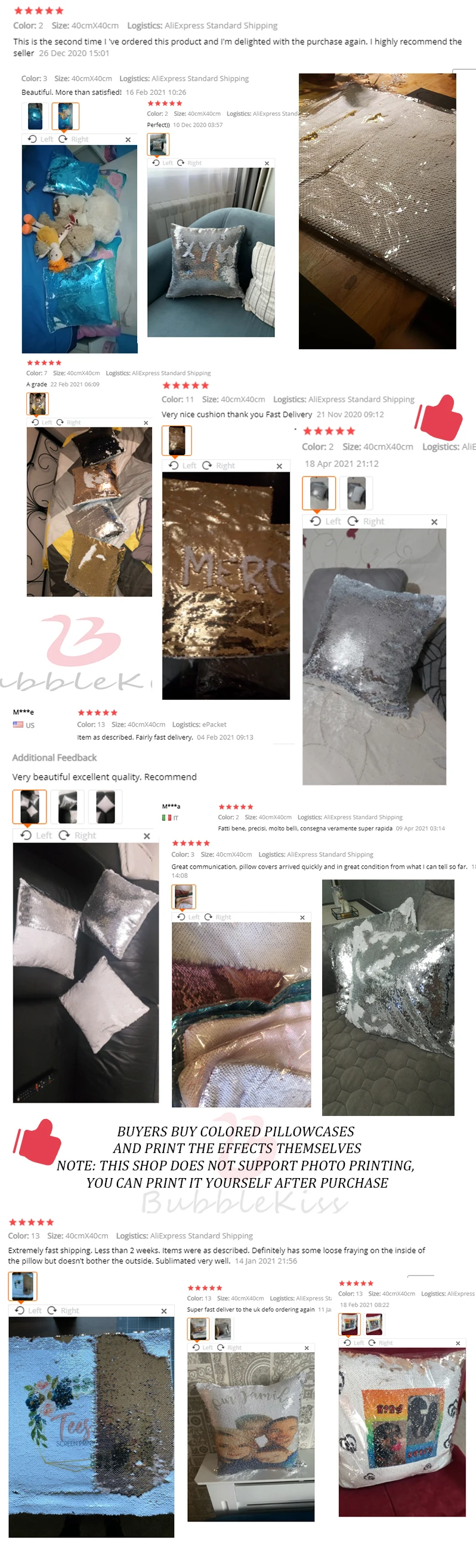 【Name】Sequin Cushion Cover [product]: two-color sequin pillow [Size]: 40*40CM, the weight is about 130G [Description]: Two-color sequin pillow, you can write freely, draw! 【Note】 (1)Please allow a little deviation in terms of color or size, thank you for your understanding! (2) Not including Filling , containing only the cushions cover. (3) Machine wash, warm 40 C. Do not bleach. Do not tumble dry. (4) Perfect for living room, bedroom, dining room, children's playroom, children's bedroom,