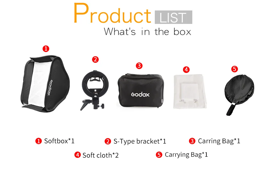 Складной софтбокс Godox 80x80 см 32 ''* 32'' с держателем кронштейна S + сумка для переноски для фотостудии Speedlite Strobe