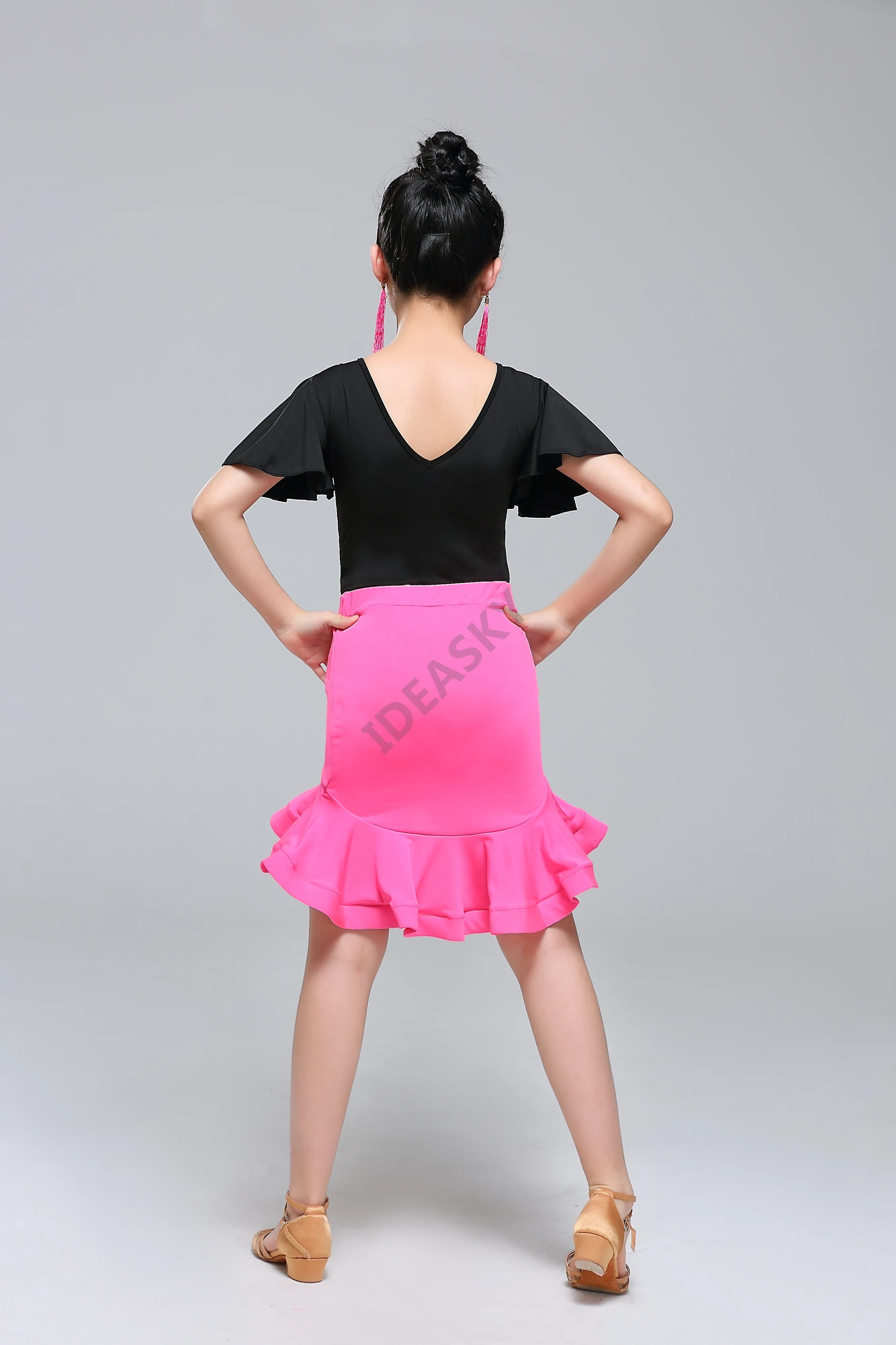 Гофрированная одежда для латинских танцев танцевальная одежда платье для соревнований Топы юбка Танго Бальные Сальса Румба ча для девушки, дети, ребенок