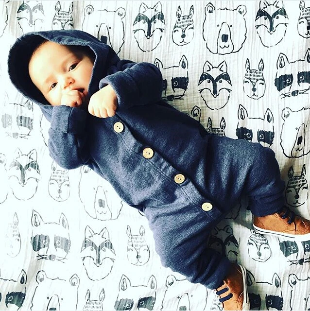 Новейшие милые мягкие хлопковые однотонные Детские ползунки с капюшоном!