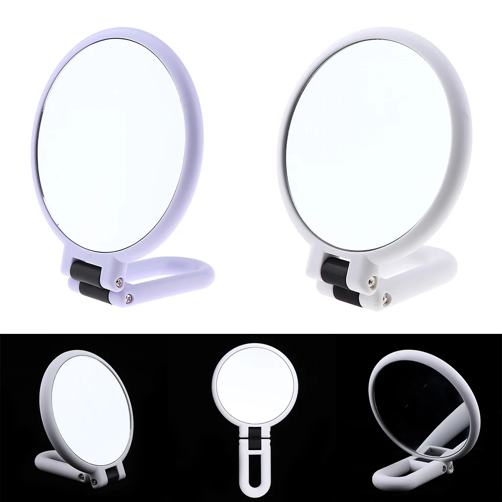 Двустороннее зеркало для макияжа с складной ручкой, портативное и удобное в использовании.