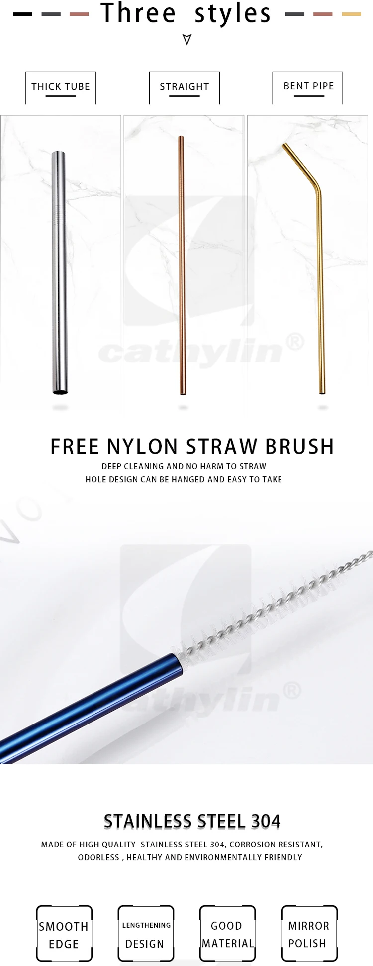 CATHYLIN питьевой соломы набор 5 шт многоразовые 304 нержавеющая сталь бар аксессуары прямые 5 питьевой соломы + 1 щетка для очистки OT0009