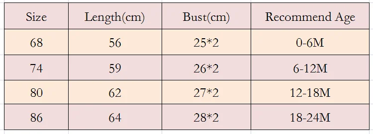 Material: CottonSize Chart: