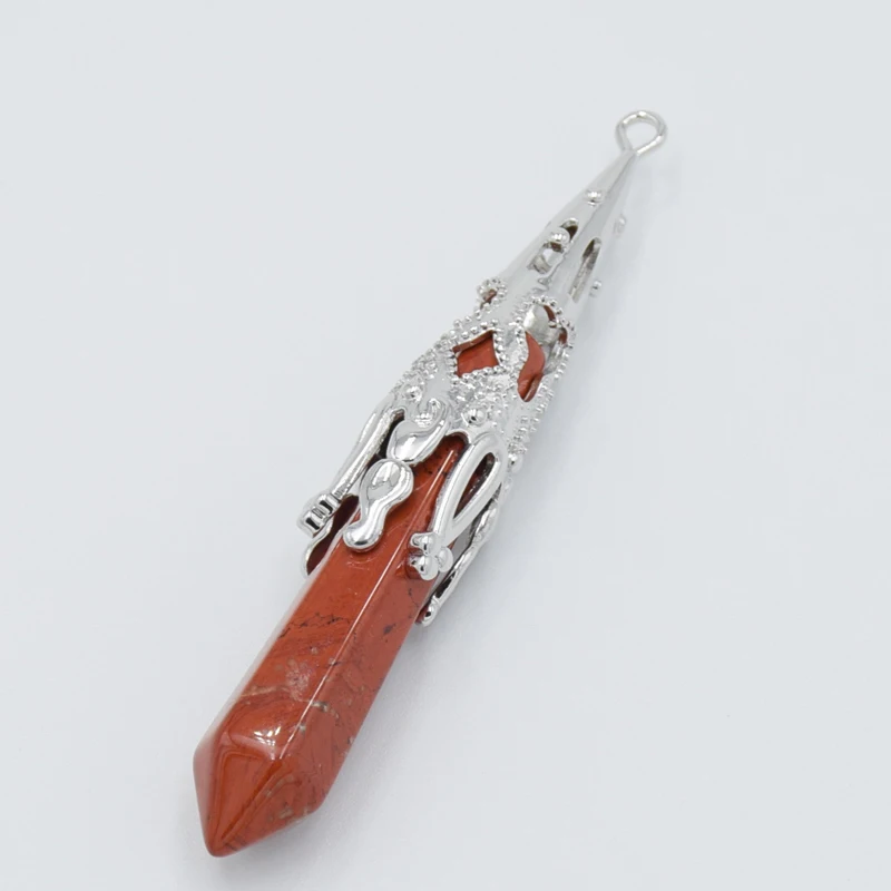 Покрытый серебром натуральный аметист Опал Кристалл Камень шестиугольник Призма точка для мужчин и женщин ожерелье Подвески Reiki Исцеление Шарм ювелирные изделия