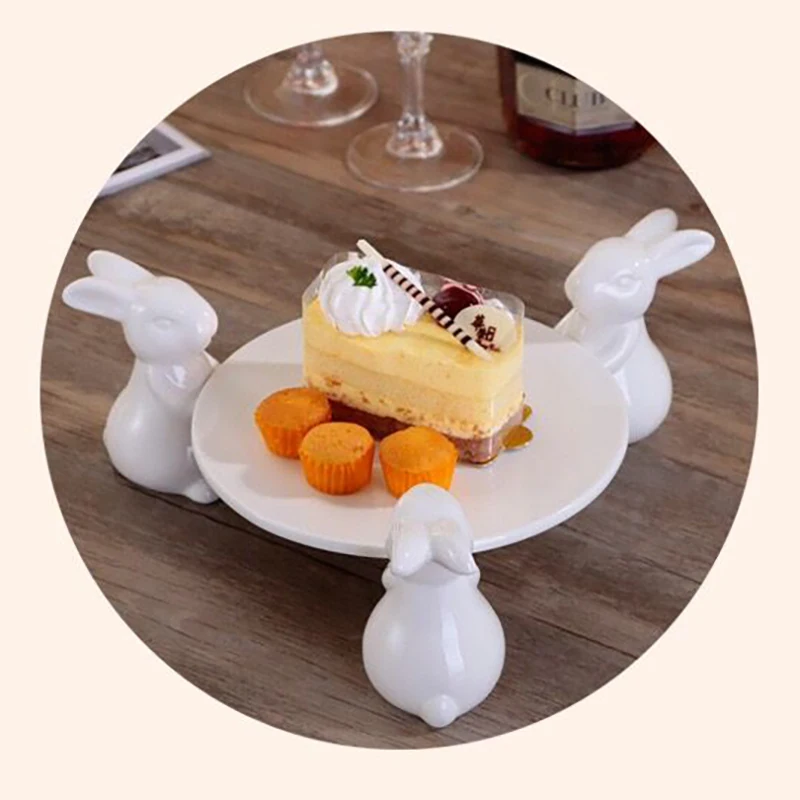 Креативная керамическая тарелка с кроликом, поднос с кроликом, статуэтка для торта, обеденные тарелки, декоративная фарфоровая статуэтка, тарелка с фруктами, посуда, ремесло, украшение, подарок и ремесло
