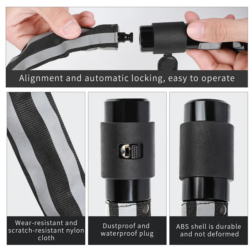 Материал: легированная сталь, АБС-пластик Подходит для: велосипеда/электрического велосипеда/мотора Особенности 1: высокая прочность, высокая безопасность, долговечность Feature2: анти-кражи 5 цифр пароль Особенности 3: износостойкий нейлоновый тканевый чехол