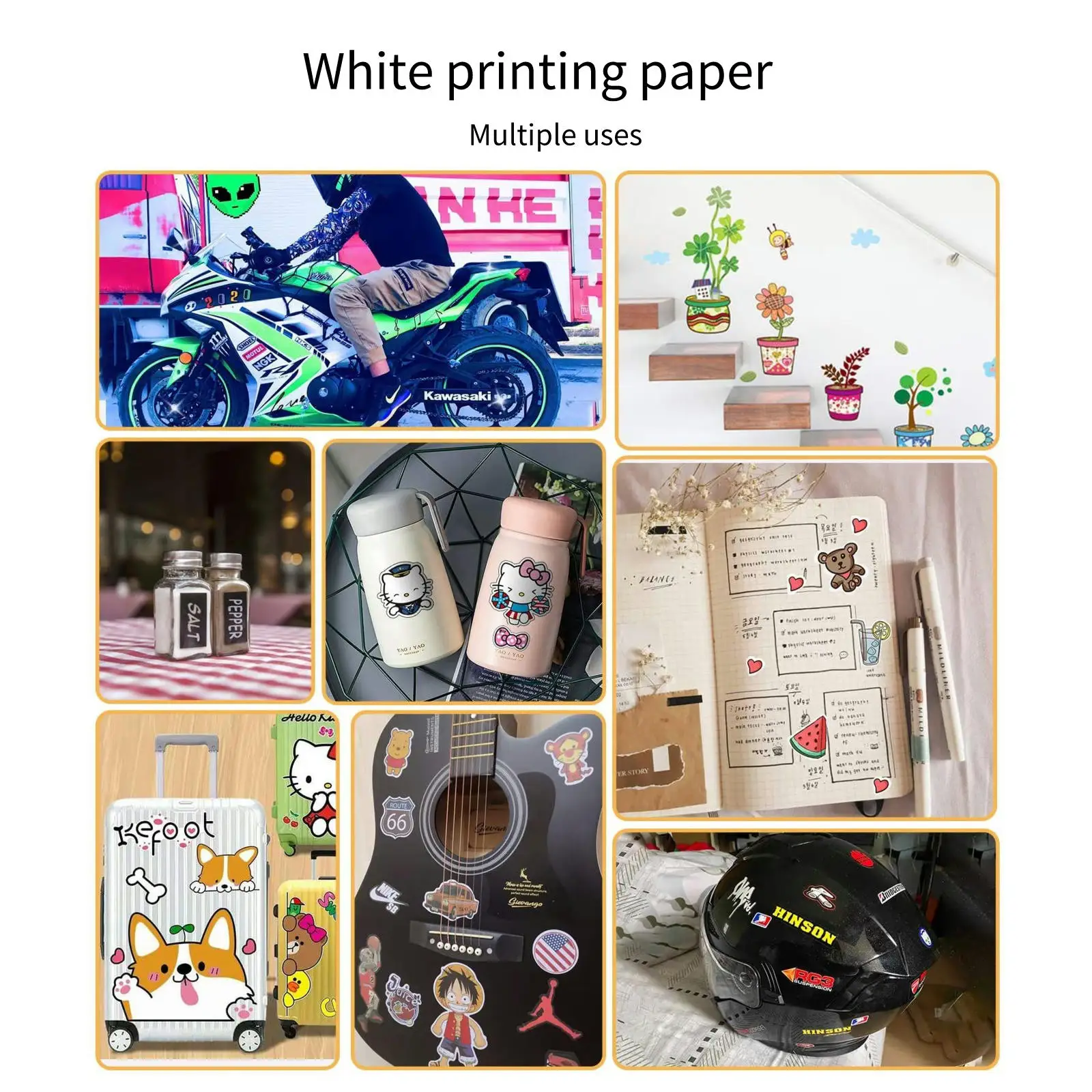 50 листов Водонепроницаемая печатная бумага прозрачная печатная бумага а4 лазерная бумага для струйных принтеров белая самоклеющаяся наклейка этикетка матовая поверхность бумажный лист У нас есть 5 спецификаций печатной бумаги, пожалуйста, проверьте атрибуты продукта перед размещением заказа! Если у вас есть какие-либо вопросы, пожалуйста, свяжитесь с нами. Полный А4 Размер этикетки: 210 мм x 297 мм. Стандартный письмо размеры 8,5 "x11" Вес бумаги 80 ГСМ (160 ГСМ, включая подложку). Материал: полипропилен, полное имя-полипропилен Характеристики: водонепроницаемый Тип: обычная белая печатная бумага и прозрачная печатная бумага DIY персонализированные наклейки: Творите с помощью бумаги для принтера! Наклейки выглядят превосходно, как уникальные настенные фрески, наклейки для детей, виниловые наклейки для автомобилей, наклейки на бампер, глянцевые виниловые наклейки для ноутбуков, на кофейные кружки, бутылки, но также как ярлык для деловых продуктов. Устойчивость к разрыву и водонепроницаемость: Этот матовый белый печатный винил для струйного принтера допускает незначительные царапины и почти невозможно разорвать, изготовить нанотехнологии, водонепроницаемый в струйной печати. Совместимость с большинством струйных принтеров: Виниловая наклейка для печати бумаги отлично работает с большинством домашних принтеров. Печатная переводная бумага надежно сохраняет чернила без пятен, обеспечивает высокую цветопередачу. Кроме того, работает со всеми ремесленными резаками.