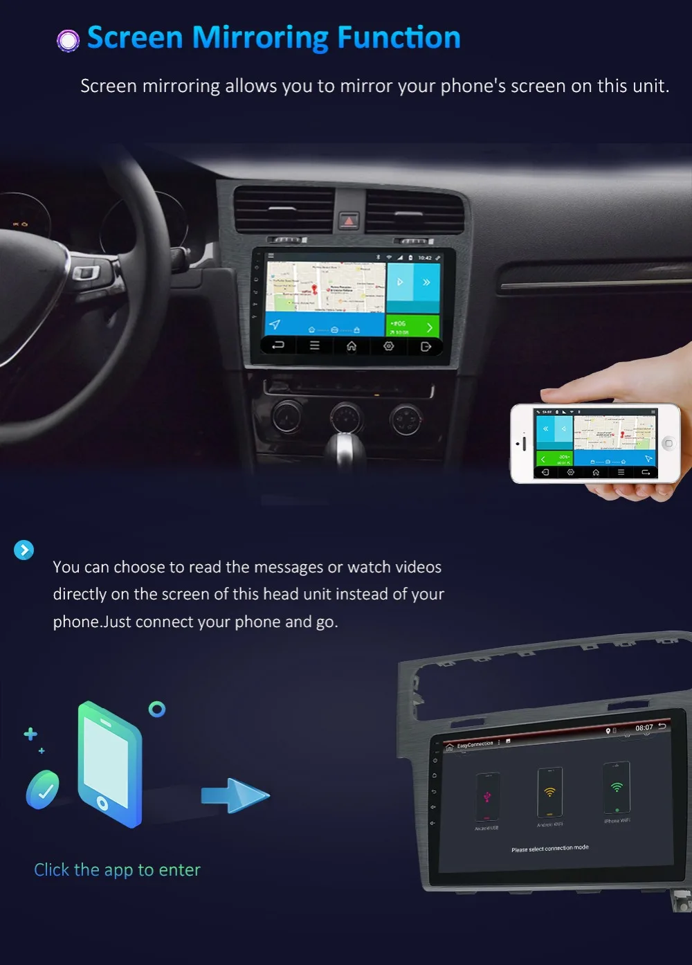 1:Bluetooth бесплатно. Поиск телефонной книги по Bluetooth от "A до Z"2:HD емкостный мультитач экран: 1024*6003: камера заднего вида/запись привода DVR от заднего USB: Поддержка4:OBD, внешний микрофон, зеркальная связь: поддержка (требуется дополнительная оплата)5: холодный запуск около 20-35 секунд6: зеркало, управление рулем: Поддержка7:Wi-Fi: Встроенный/через телефон в качестве Wi-Fi горячей точки.8: поддержка приложений: многие, например: Google Play Store, Skype, Facebook, YouTube, Twitter и т. Д.9: Поддержка RDS.FM частота: 87,5-108MH AM частота: 522-1710 кГц10: Автомобильный Интернет: встроенный wifi, suport 3G/4G/современный (требуется дополнительная оплата)11: поддержка GPS карты, такие как Google online MapYandex.navi/Waze on Line CityGuide.Yandex карта должна связаться с нами для установки12: мульти OSD Languaes: английский/русский/французский/немецкий/испанский/итальянский/арабский/Португальский/Турецкий/тайский/Польский/иврит и т. д. 60 видов языка13: Встроенный накопитель: Встроенный 32G для системы14: Логотип Ботинка: Выберите Встроенный 50 видов Автомобильного Логотипа. Выберите логотип автомобиля, который вам нравится.15:RCA кабели для сабвуфера, кабель питания plug and play, легко установить16: чистый Android 10,0 OS, Google Play Store, Skype, Facebook, YouTube, Twitter и т. Д.