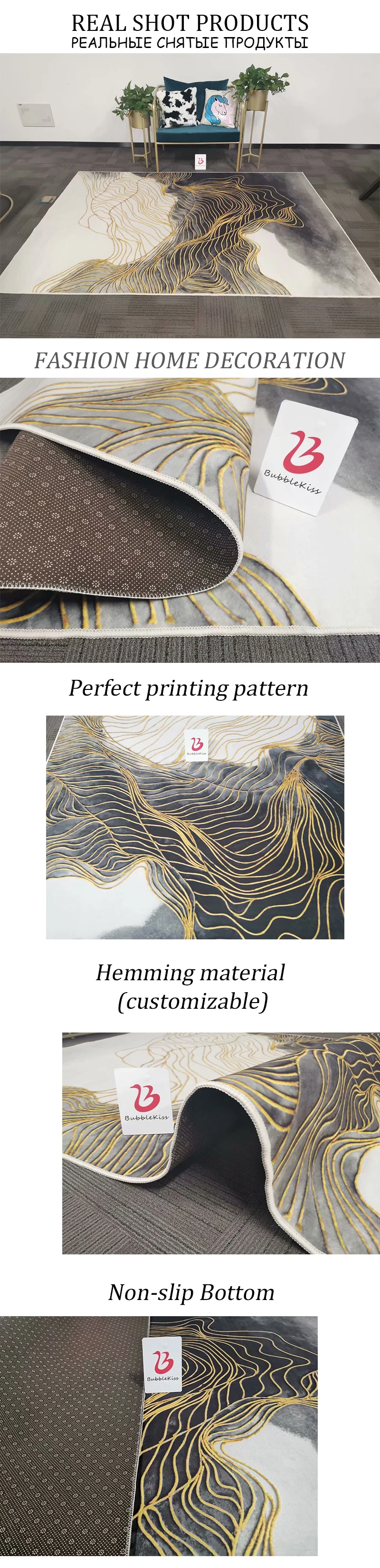Уважаемые клиенты, наш производственный отдел недавно ввел белый кант для этого ковра. Реальные фотографии ковра следующие, общий эффект чище и красивее. Если вам нужны другие цвета для обрезки, пожалуйста, свяжитесь со службой поддержки клиентов перед оформлением заказа. По умолчанию используется белая окантовка.