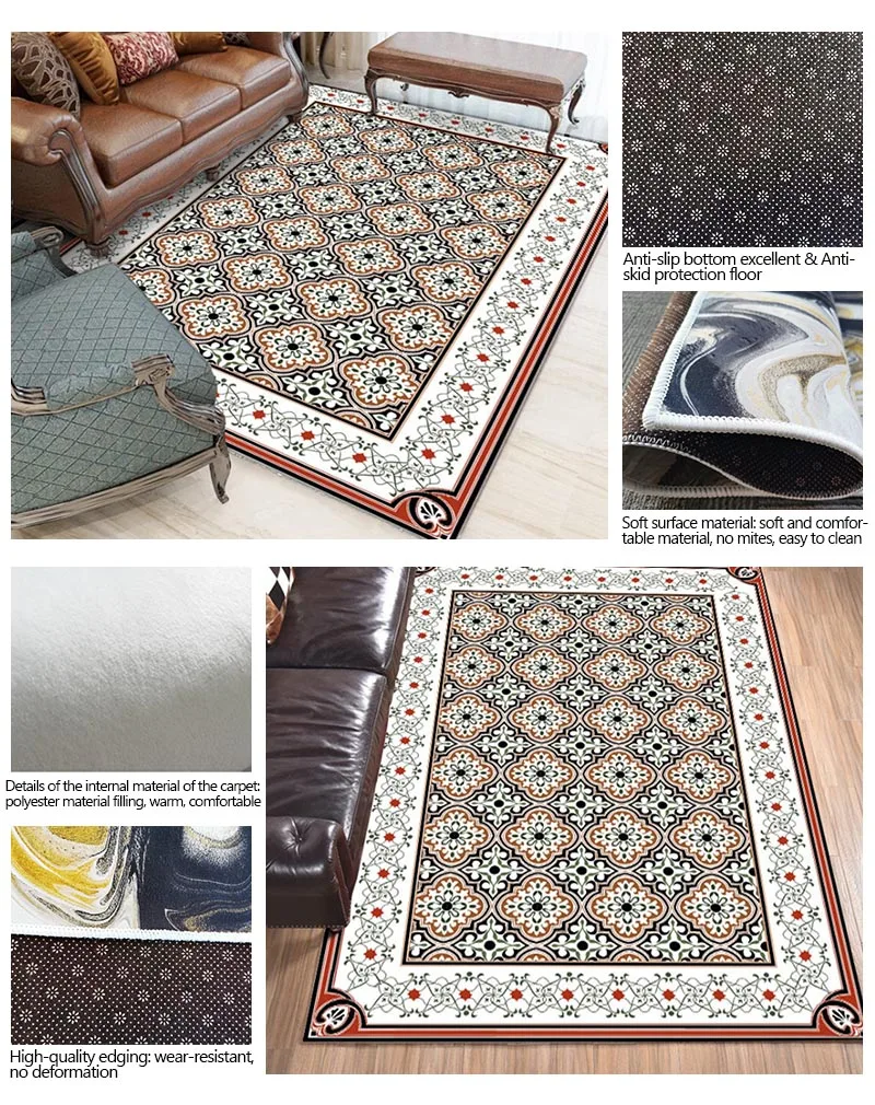 Уважаемые покупатели, в нашем производственном отделе недавно появились белые окантовки этого ковра. Реальные фотографии ковра выглядят следующим образом, общий эффект чистый и красивее. Если вам нужны другие цвета окантовки, пожалуйста, свяжитесь со службой поддержки клиентов перед размещением заказа. По умолчанию мы используем белые окантовки.