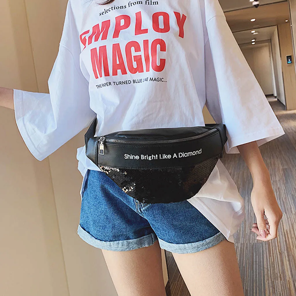 Unisex Sequins Leather Fashion Bag Shoulder Crossbody Bag Chest Bag