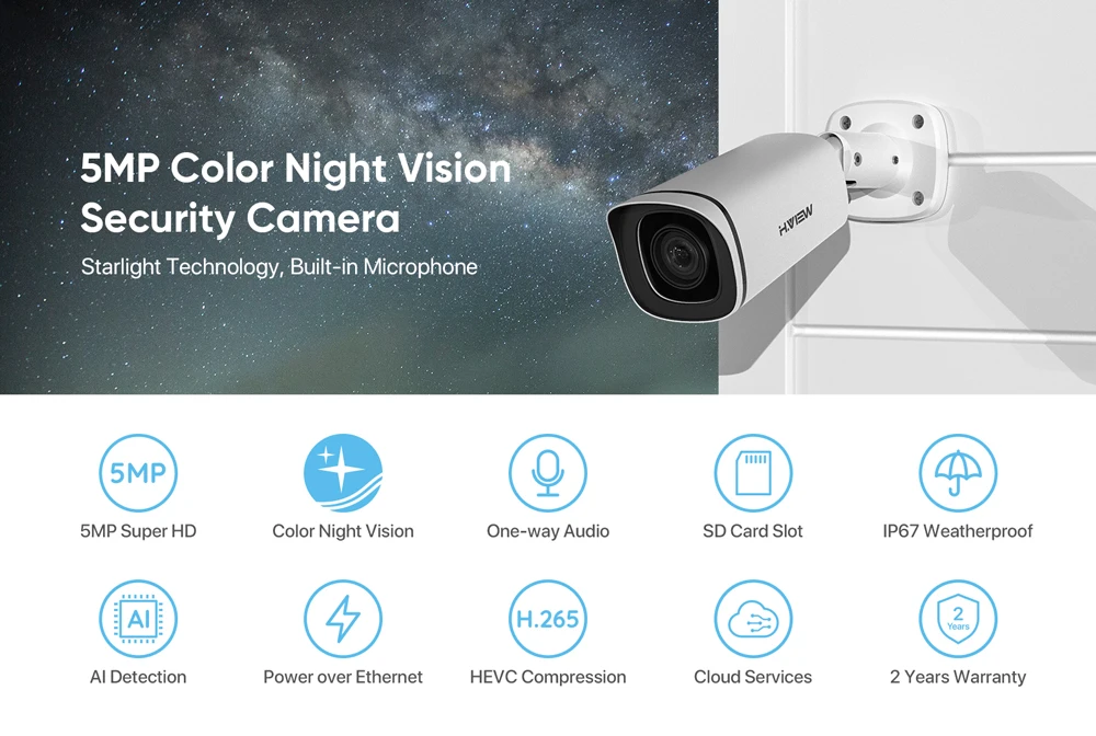 Камера видеонаблюдения 5 Мп с цветным ночным видением