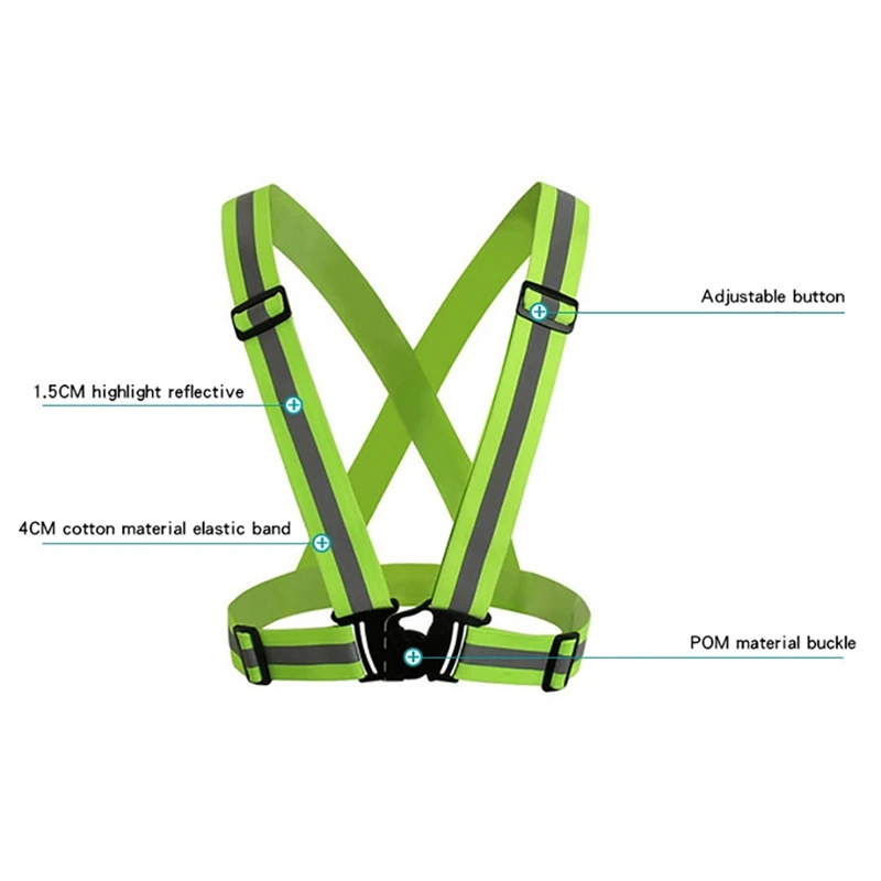 1.The 1.5cm high brightness reflective material and 4cm nylon elastic band make up this reflective vest, along with the sense of comfort and high reflective effect