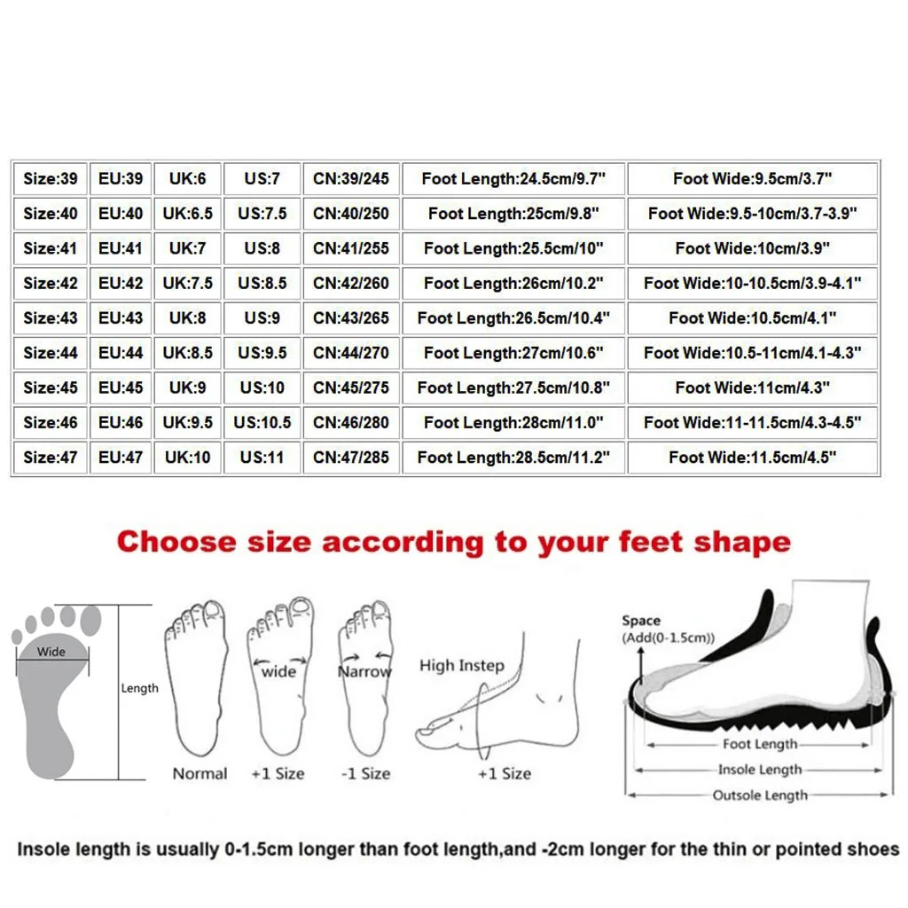 Полезные советы: Различные стили обуви, пожалуйста, выберите размер в соответствии с типом вашей стопы.