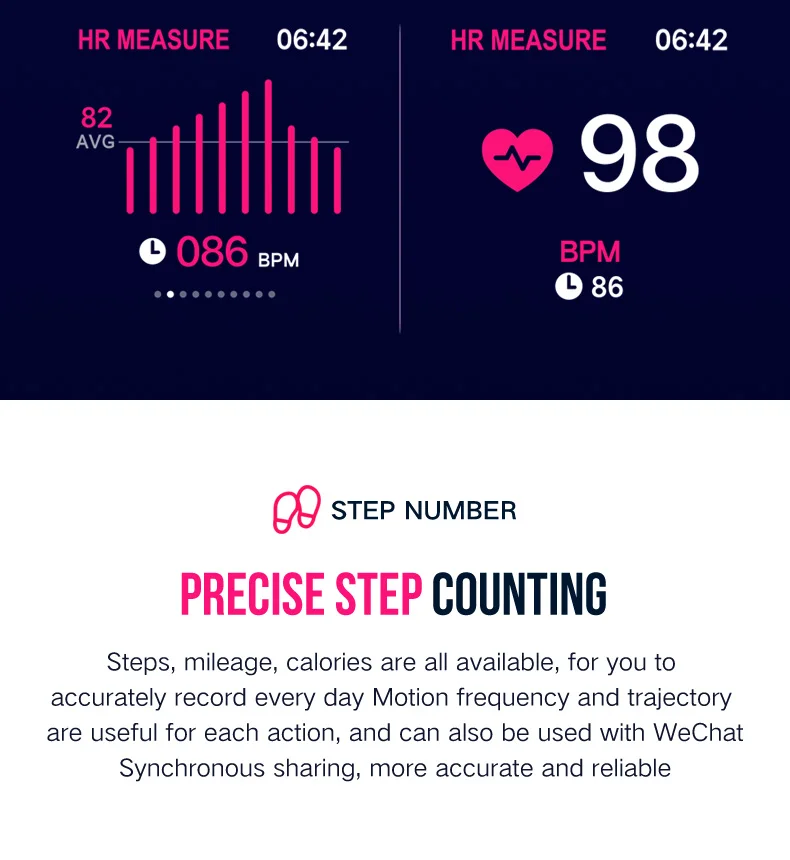 1. функция отображения браслета: отображение времени, отображение значков батареи, отображение даты, отображение недели, стандартная функция движения (шаг, расстояние, калории) мульти-спортивный режим (ходьба, бег, Велоспорт, скакание, бадминтон, Баскетбол), футбол, плавание), частота сердечных сокращений, обнаружение артериального давления, обнаружение кислорода в крови, Отображение времени сна, регулировка яркости экрана, управление музыкой. 2. Функция напоминания: входящий вызов, SMS, QQ, WeChat напоминание (отображение содержания и имени). Facebook, Whatsapp, Twitter, Skype и другие зарубежные напоминания по, будильники (три набора будильников), малоподвижные напоминания. 3. другие функции: интеллектуальная защита от потери, дистанционное управление фотографией, режим не беспокоить, поднимите руку на яркий экран, настройка Формата времени, сброс фабрики, длительное нажатие для отклонения входящих вызовов, выбор интерфейса с тремя часами, управление музыкой (поддерживается Предыдущая песня, следующая песня, воспроизведение/пауза), дисплей погоды, apple health и т. Д.