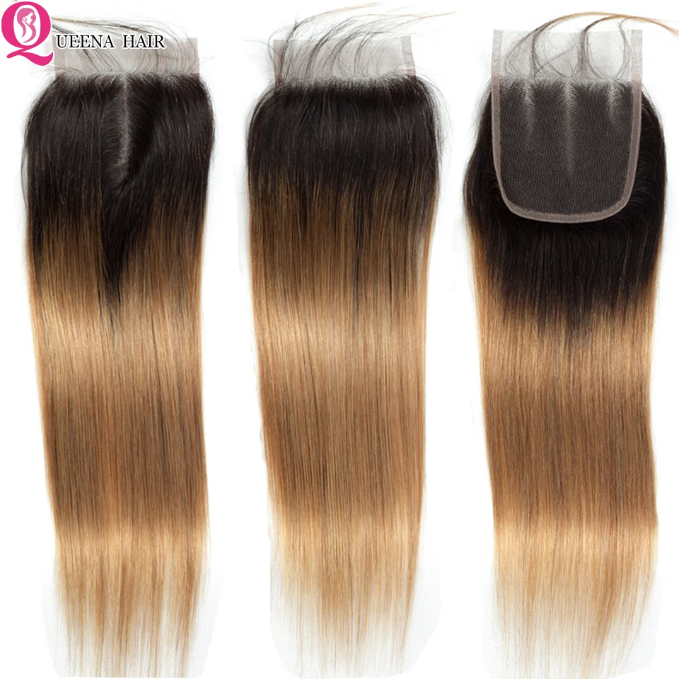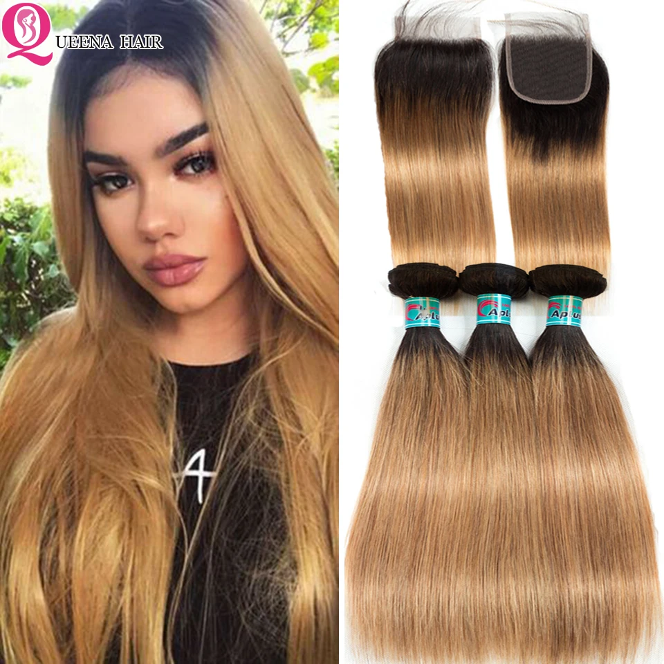 Ombre Bundles with Closure 1B/27 Blonde Ombre Straight Hair Bundles With Closure Remy Peruvian Human Hair 3 Bundles And Closure