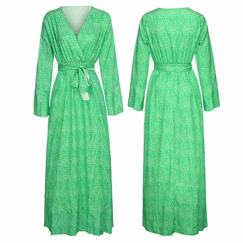 Информация о продукте: Пол: s Материал: полиэстер, спандекс Украшение: бант повязка Длина: до щиколотки Стиль: Повседневный, модный Воротник: v-образный вырез Длина рукава: три четверти Тип узора: цветочный принт Повод: повседневные, повседневные, вечерние, пляжные Ручная стирка и машинная стирка в порядке Комплектация: Платье 1 шт.