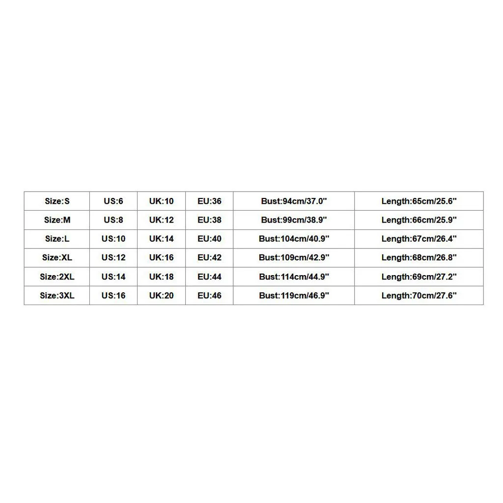 Размеры: SСвяжитесь с нами: 6UK: 10ЕС: 36Бюст: 94 см/37,0"Длина: 65 см/25,6"Размеры: МСвяжитесь с нами: 8UK: 12ЕС: 38Бюст: 99 см/38,9"Длина: 66 см/25,9"Размеры: LСвяжитесь с нами: 10UK: 14ЕС: 40Бюст: 104 см/40,9"Длина: 67 см/26,4"Размеры: XLСвяжитесь с нами: 12Великобритания: 16ЕС: 42Бюст: 109 см/42,9"Длина: 68 см/26,8"Размеры: 2XLСвяжитесь с нами: 14Великобритания: 18ЕС: 44Бюст: 114 см/44,9"Длина: 69 см/27,2"Размеры: 3XLСвяжитесь с нами: 16Великобритания: 20ЕС: 46Бюст: 119 см/46,9"Длина: 70 см/27,6"