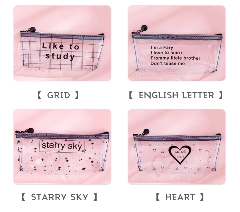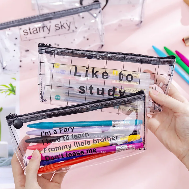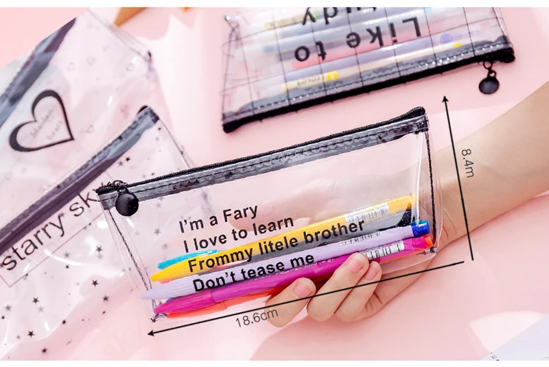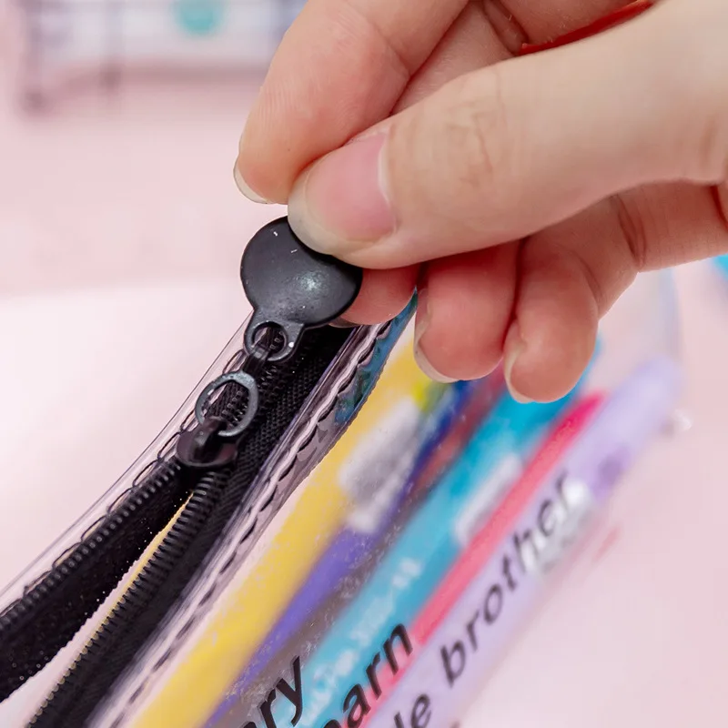 Корейский прозрачный чехол-карандаш с надписью, простой креативный студенческий Чехол-карандаш на молнии, сумка для канцелярских принадлежностей с сердцем, портативные сумки для хранения инструментов