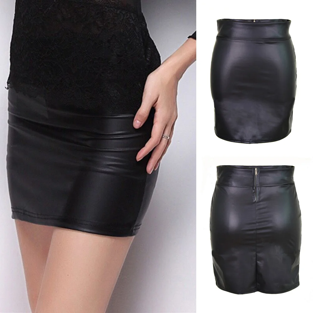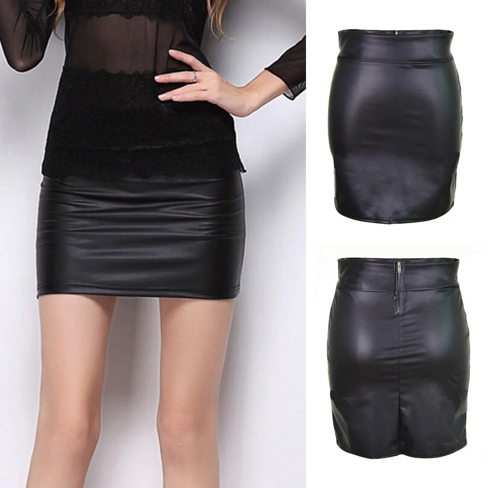 * Описание товара: женские юбки с высокой талией, имитация кожи, тонкая молния, чистый цвет, сексуальный