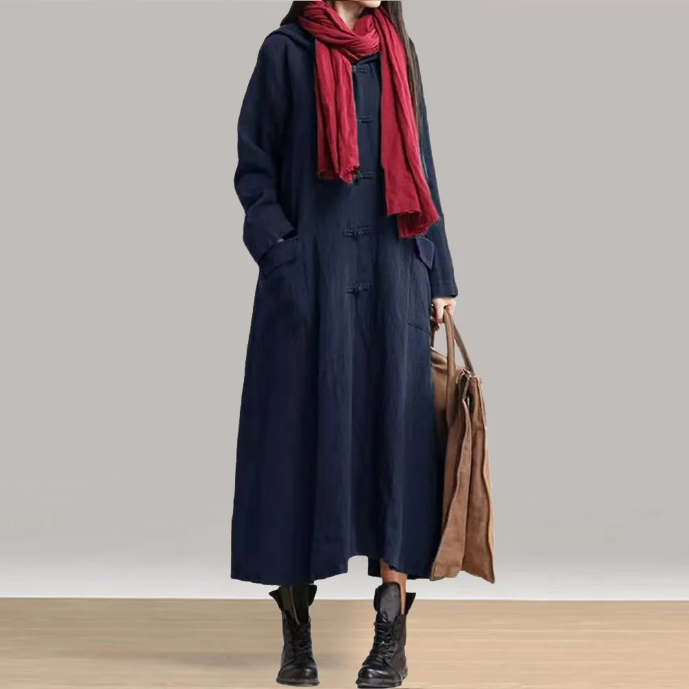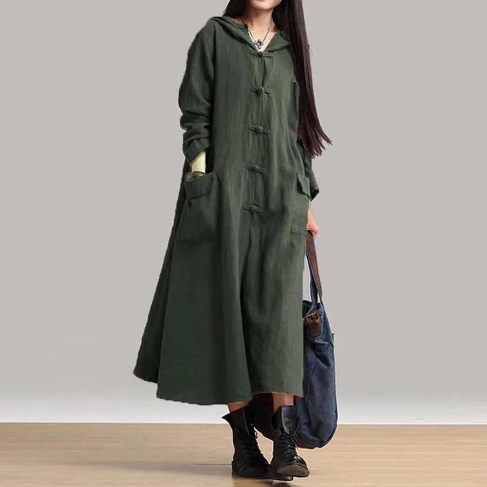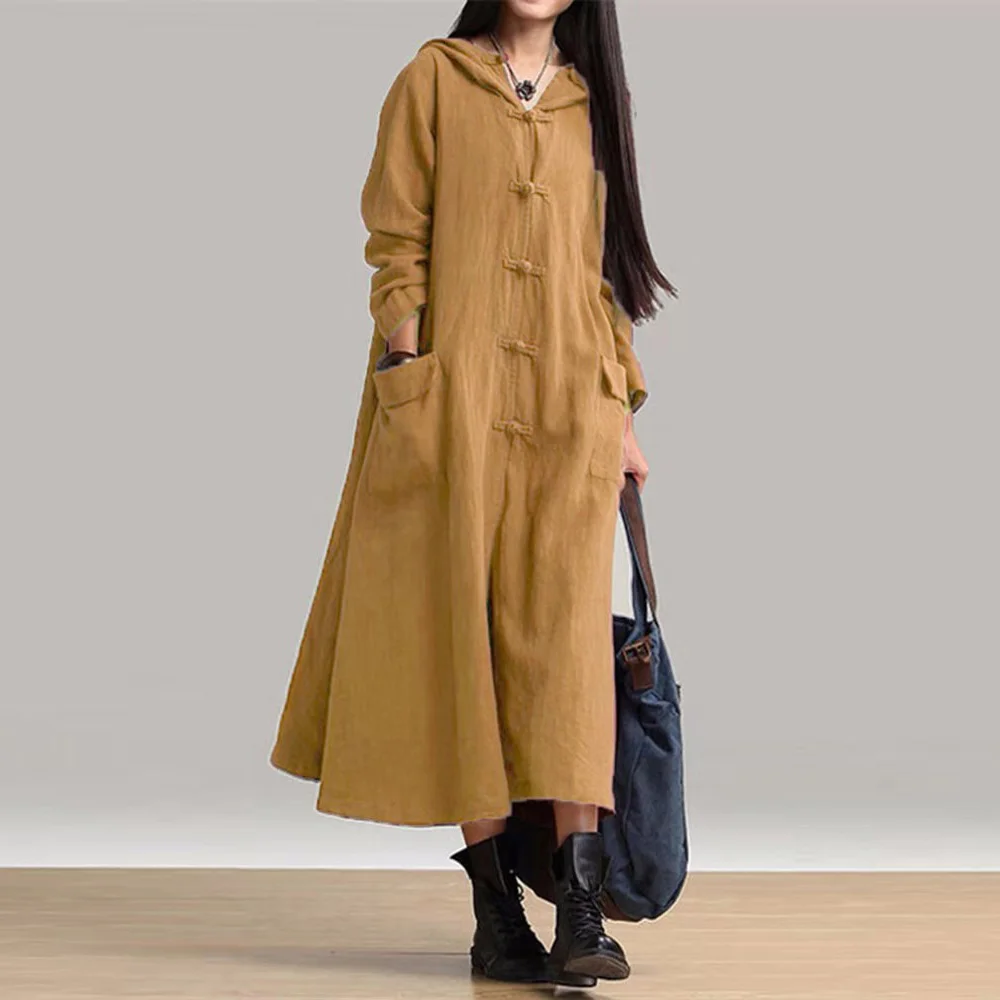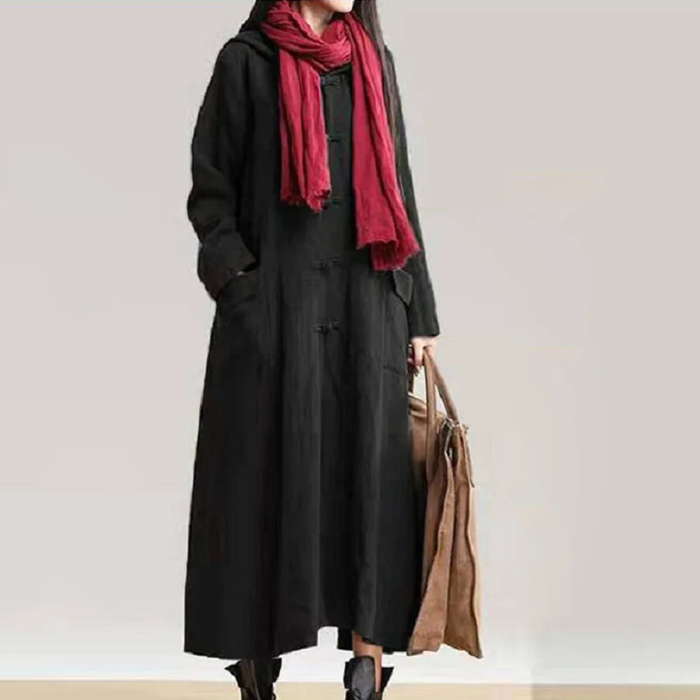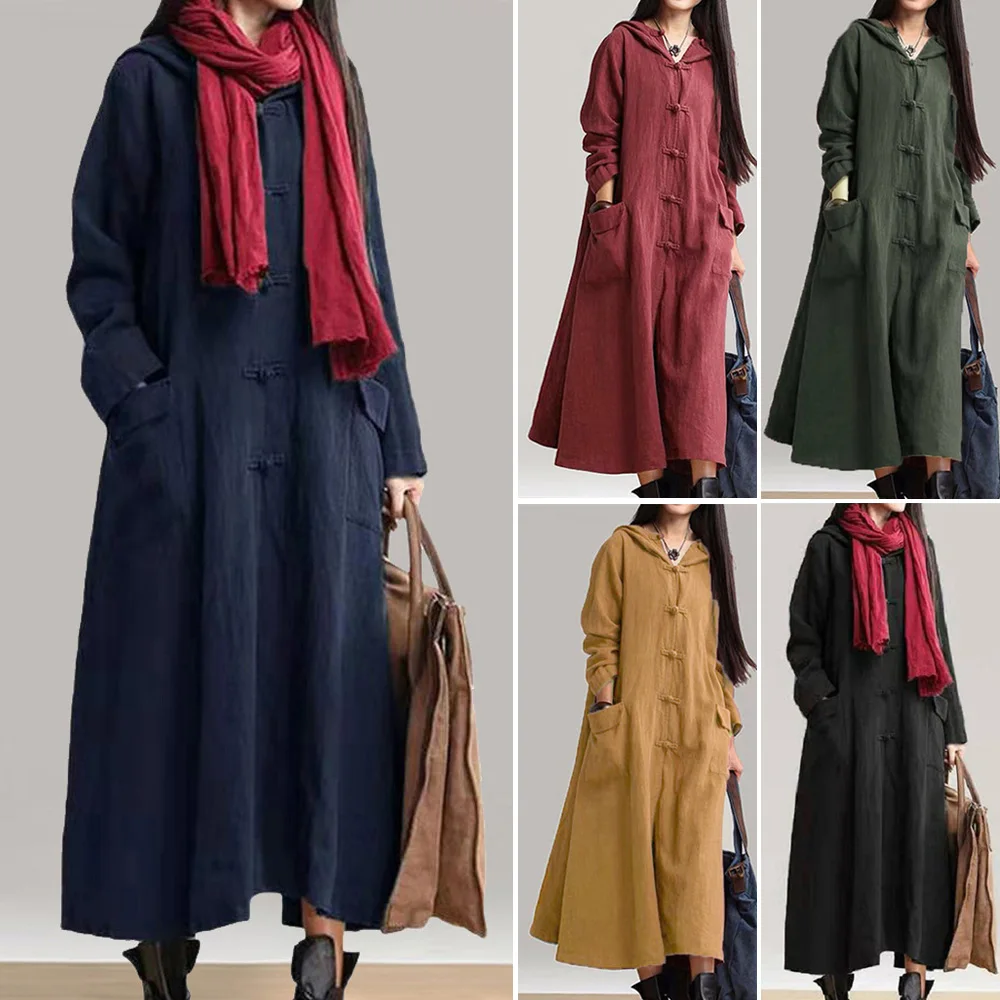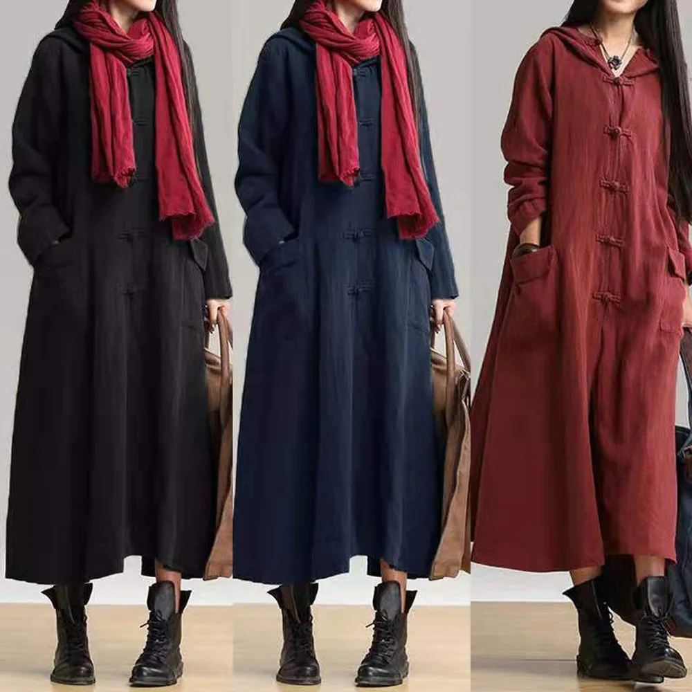 * Описание товара: свободный, однотонный, с капюшоном, с круглым вырезом, с длинными рукавами, однобортный