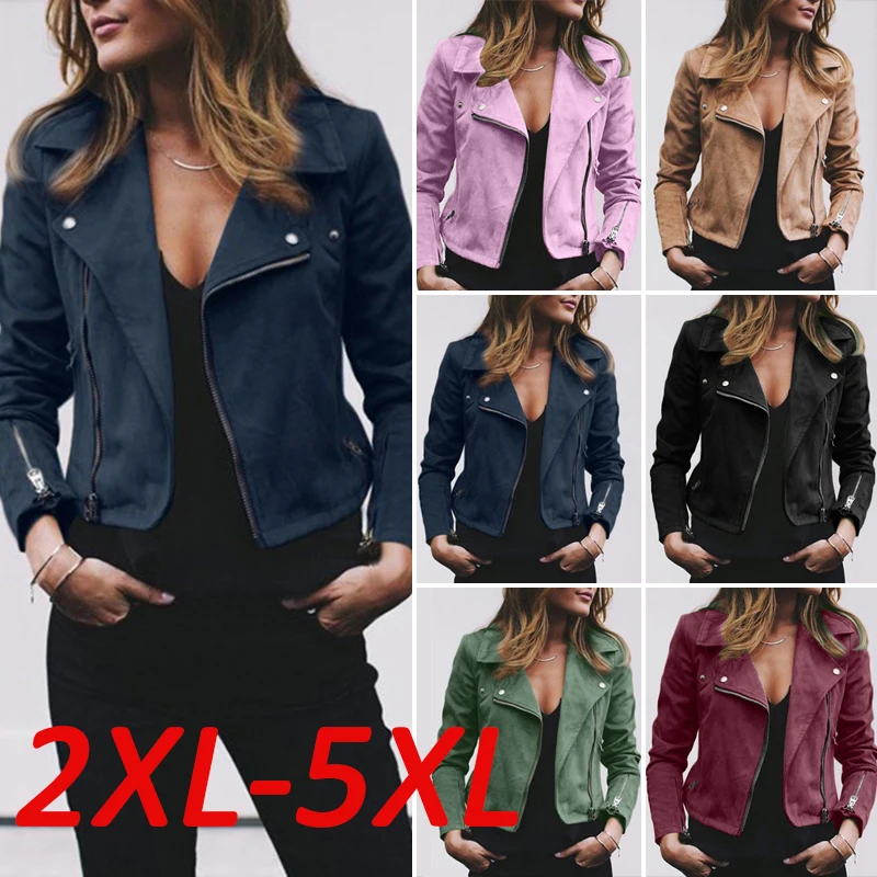 * Описание товара:Новая женская куртка с отворотом, пальто на молнии, Байкерская Повседневная Верхняя одежда