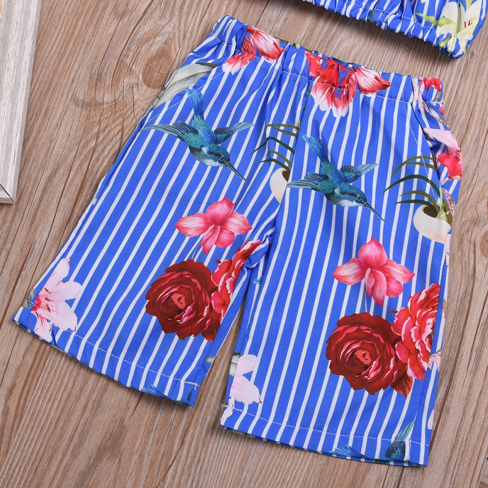 Новейший Модный комплект одежды в полоску с цветочным принтом для маленьких девочек!