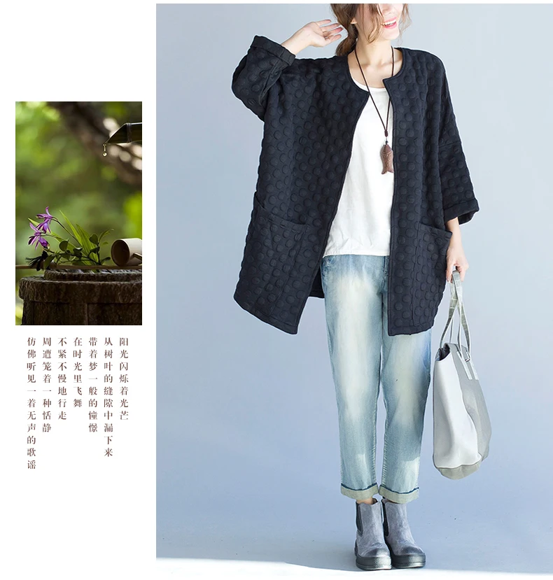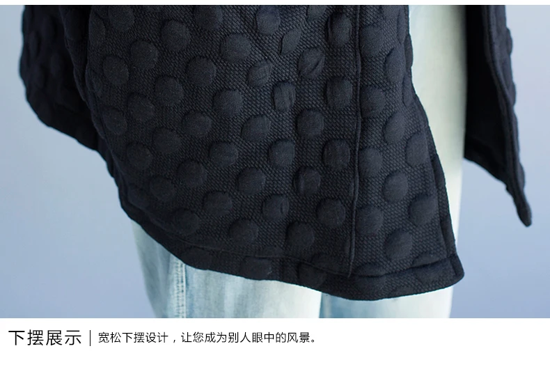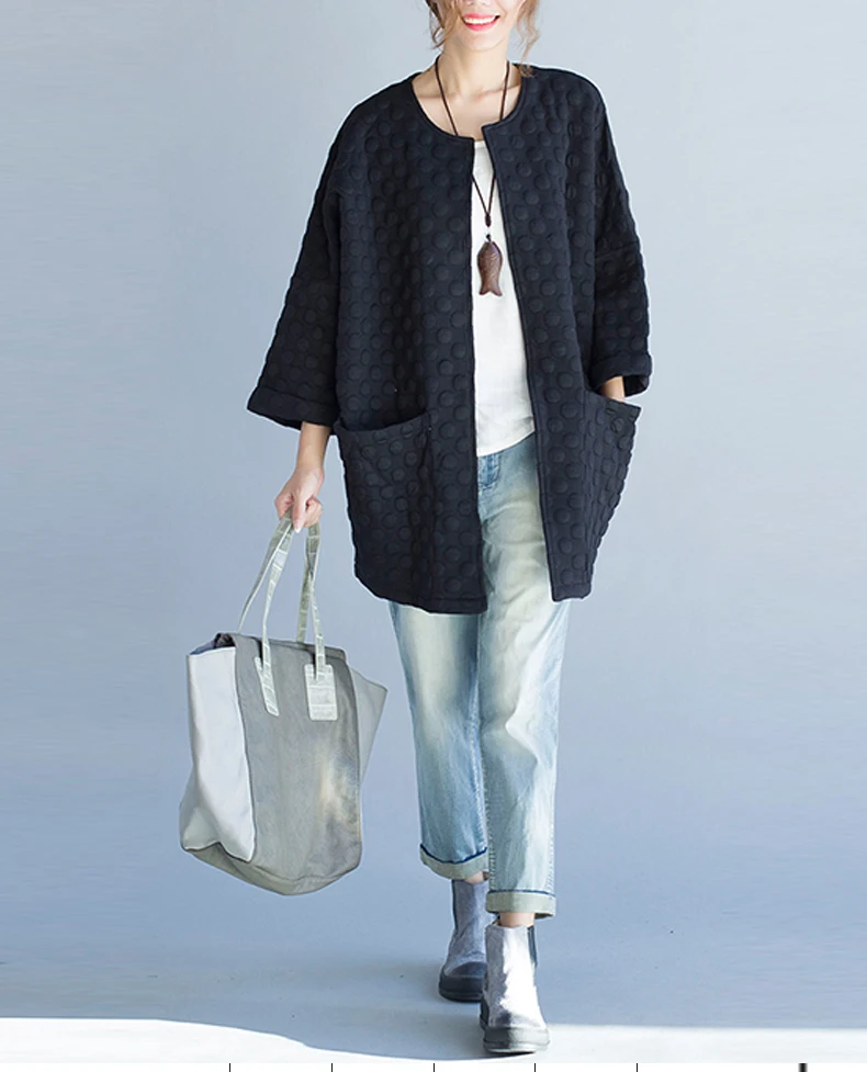 S-4XL, большие размеры, зимняя женская куртка, базовое однотонное хлопковое пальто, весеннее пальто с круглым вырезом в горошек, Женский старинный кардиган, свободное Элегантное повседневное черное пальто на осень