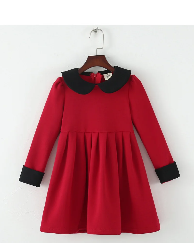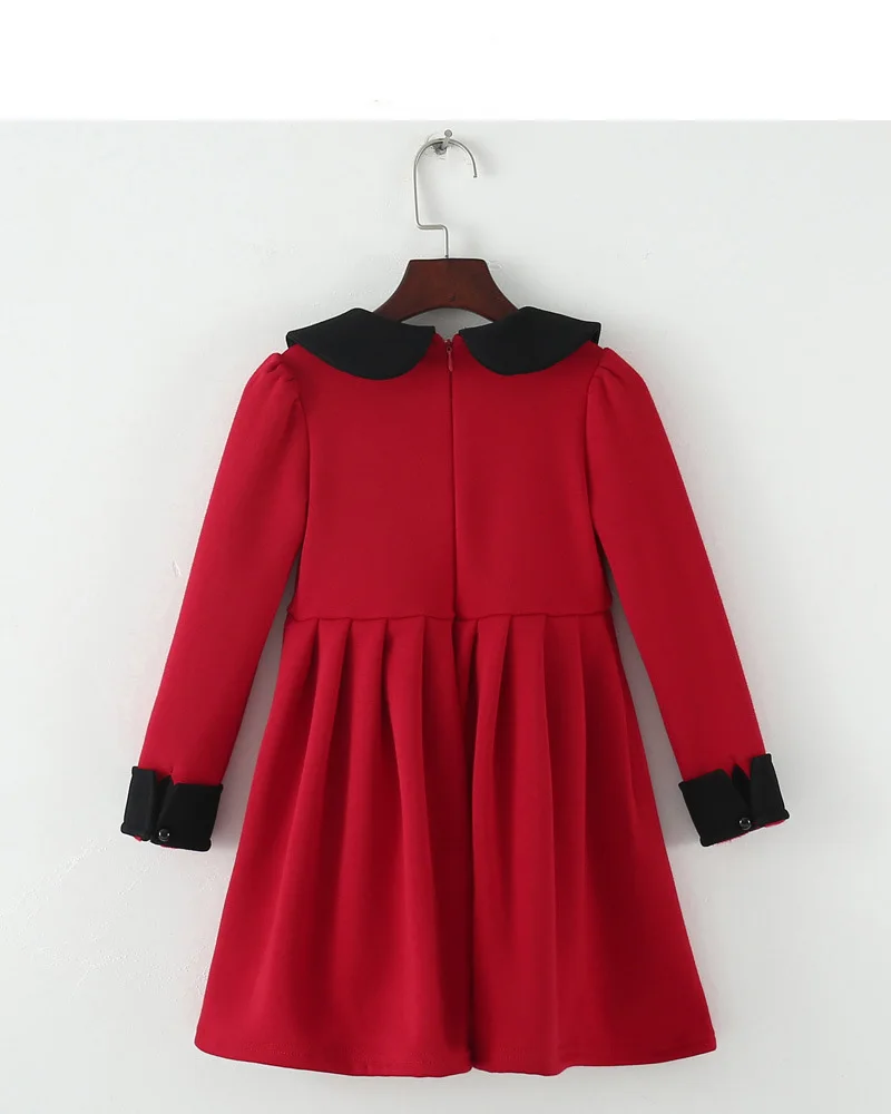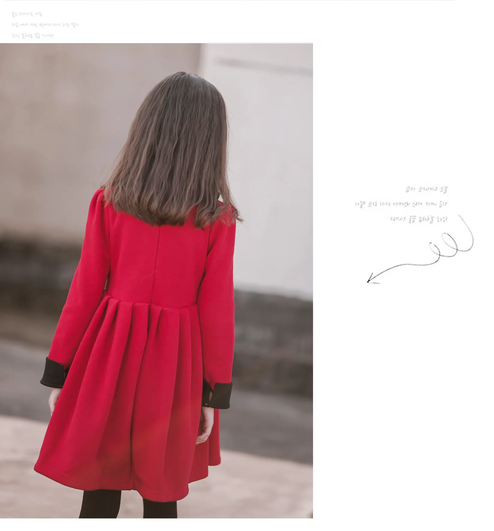 Осенне-зимнее плотное теплое платье для девочек, красные вечерние платья принцесс для детей, бархатная одежда с длинными рукавами для подростков, детские флисовые костюмы