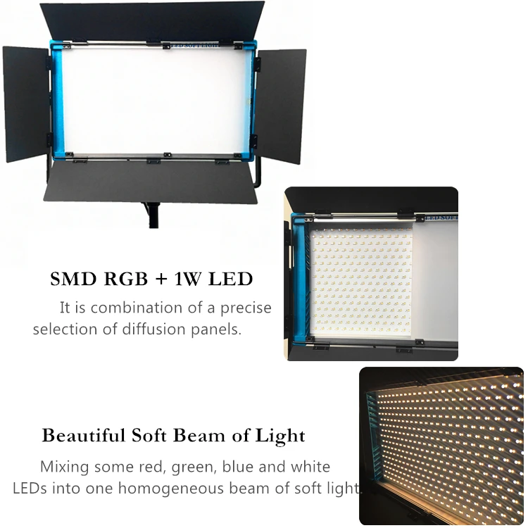Название продукта Фотостудия видео фильм свет Модель A-2200C Мощность 140 w Яркость 14000lux Ультратонкое естественное освещение CRI 95ra Цвет температуры 2800 k-10000 k Источник света Цветная (RGB) + 1 Вт Легкая регулировка угла 120 градусов Цвет (корпус лампы) Синий Регулировка Панель управления, пульт дистанционного управления, DMX, приложение для телефона Материал Алюминий пластина Размер 29x50x10 см Вес