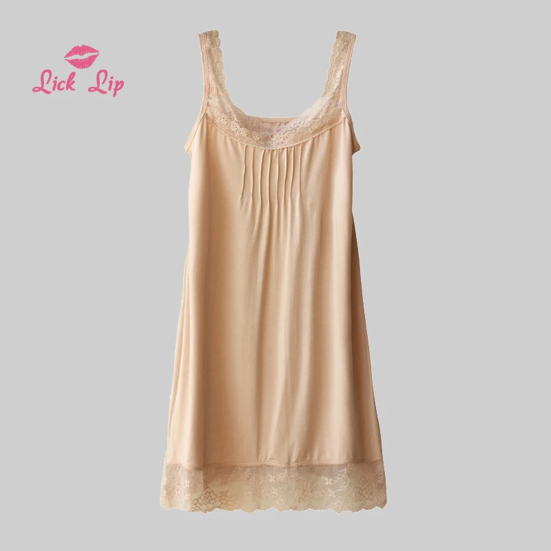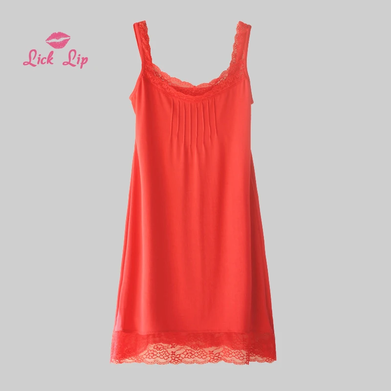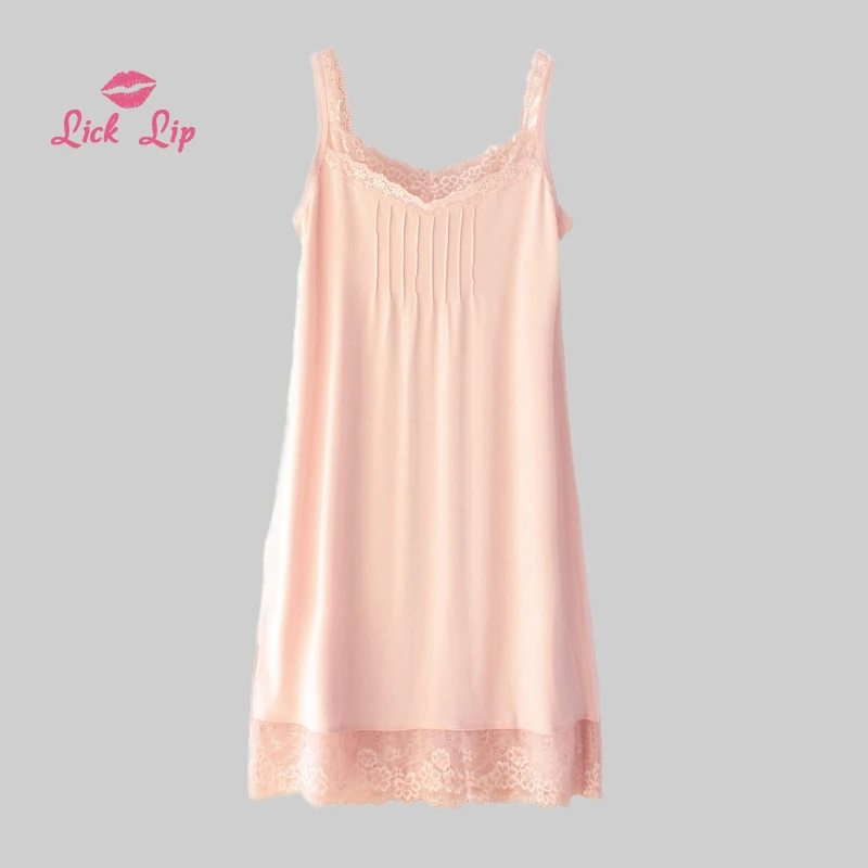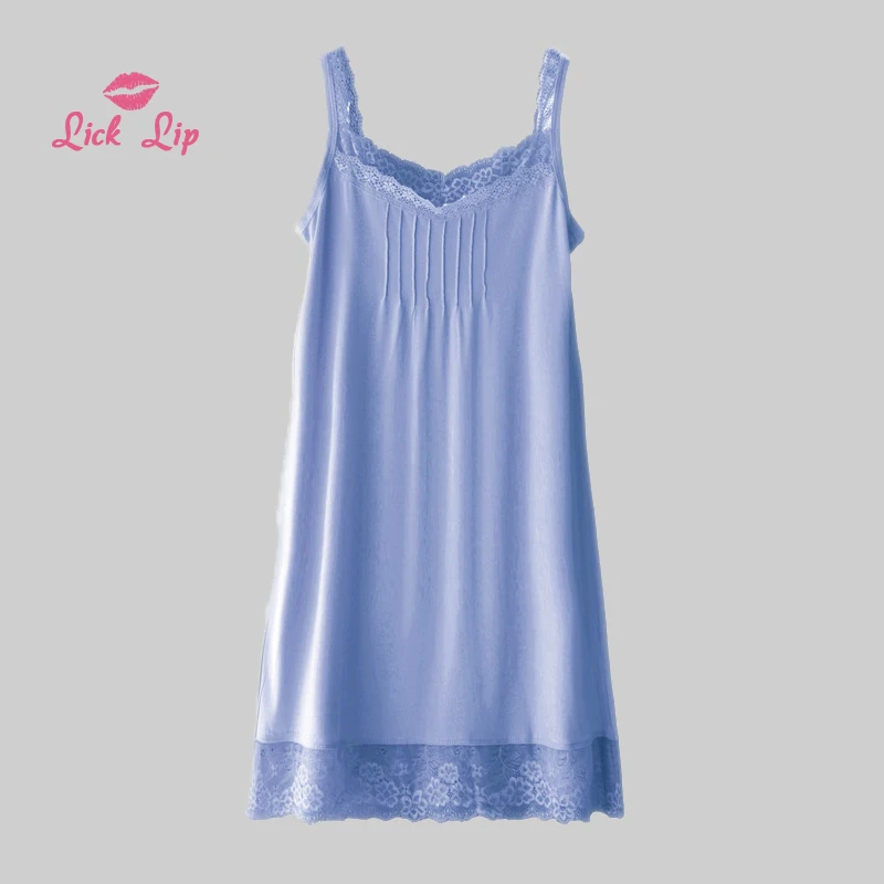 Lick губ Летняя женская ночная рубашка на бретельках, кружевная ночная рубашка средней длины, разные цвета, удобная дышащая SWA140-2 для сна, 2019.8.2