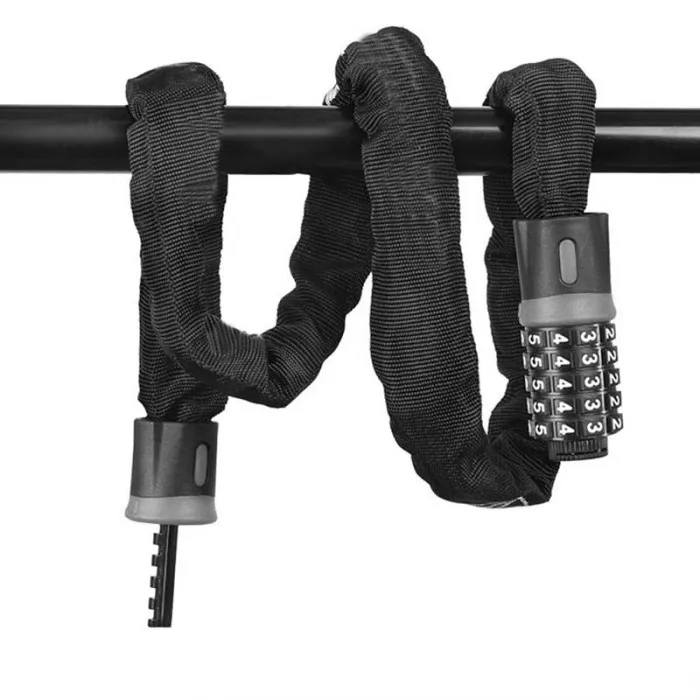 Материал: цепь изготовлена из легированной стали, корпус кодового замка изготовлен из легированного сердечника, а кодовое колесо изготовлено из экологически чистого АБС-пластика.