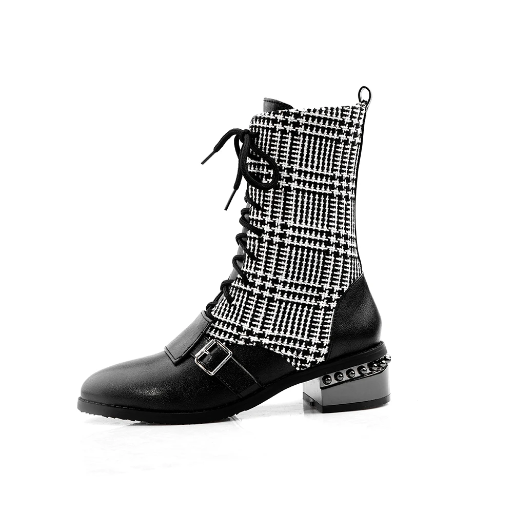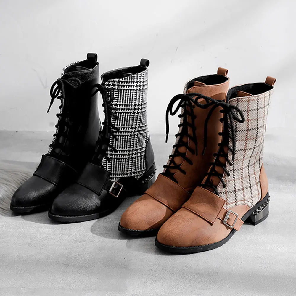 Lloprost ke/женские ботильоны; Большие размеры 32-48; Уличные полусапожки; Осенне-зимние ботинки; Бархатные Ботинки Martin в клетку; H489