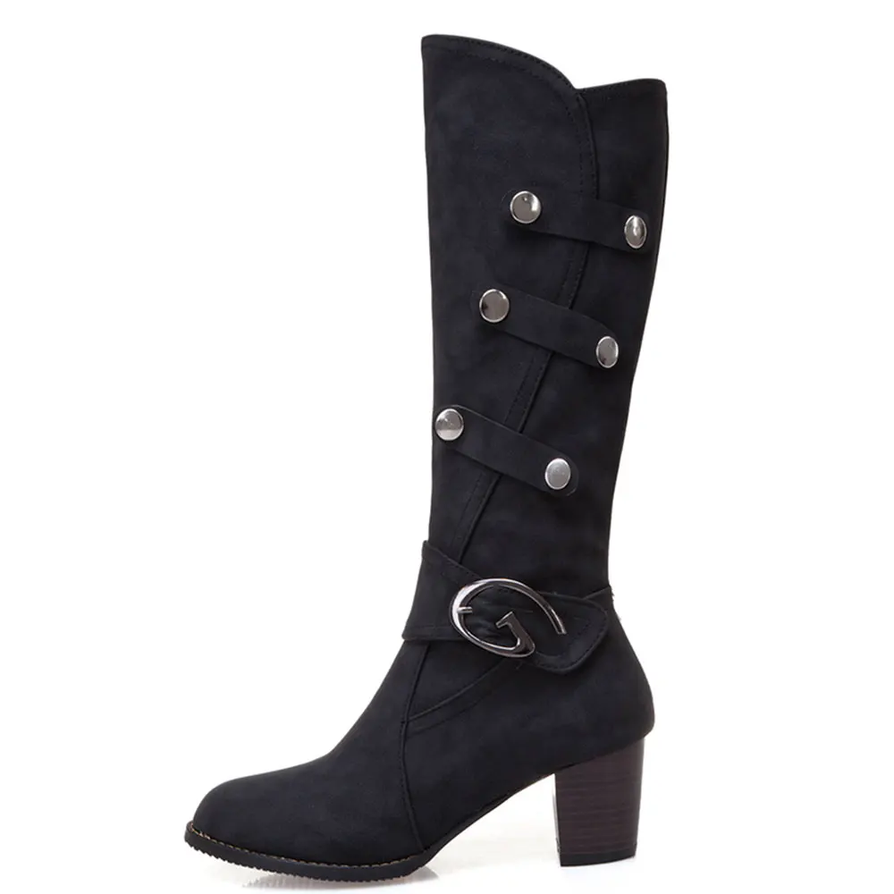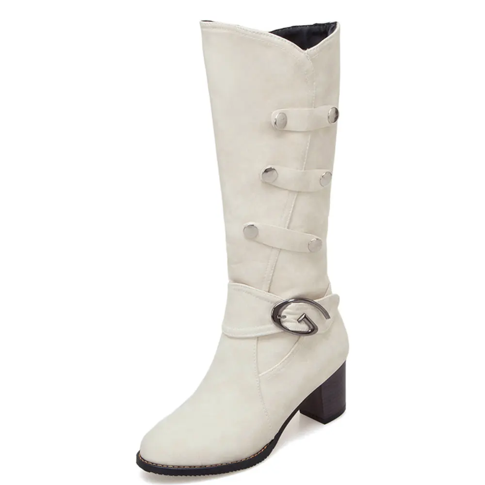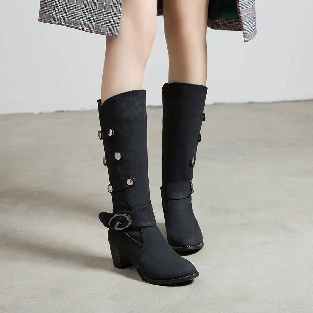 Lloprost ke Winter Women's dropship big size 34-48 buckle mid calf boots woman shoes chunky high heels shoes woman boots H540