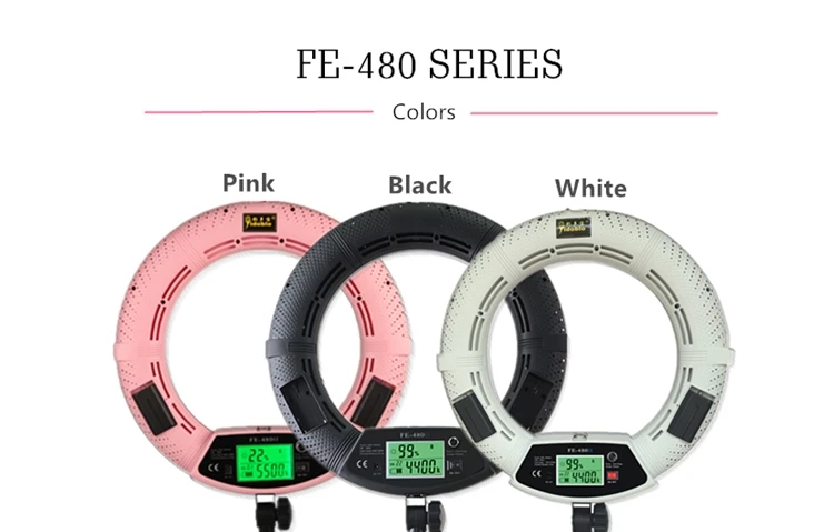 FE серия состоит из высоко яркая SMD светодиодный Чипсы, срок службы до 50000 часов. Эта серия более эффективная и энергосберегающая, даже может достигать минимального уровня потери на светильник. Работает с двумя Sony F750/970 батареи (14,5 V) или адаптер переменного тока (110V-220V). Регулируемая Цветовая температура от 3200 до 5500K. Серия FE подходит для наружной съемки. Персонажи, свадебные фотографии, освещение для макияжа и студии.
