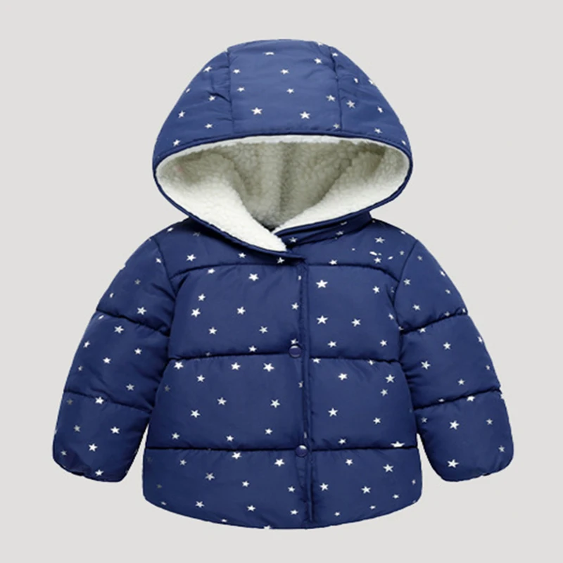 Одежда для девочек, пальто для мальчиков хлопковое короткое пальто с капюшоном и принтом «маленькие звезды» на подкладке качественная одежда для детей 1-5 лет