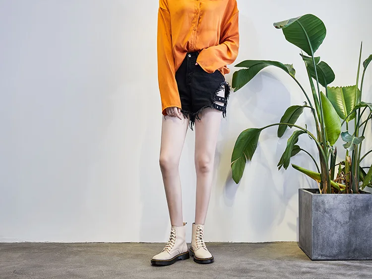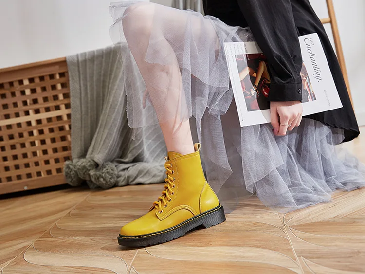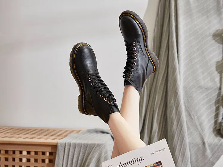 Женские ботильоны; Женская зимняя обувь; Женская обувь на плоской подошве и среднем каблуке; Обувь на платформе со шнуровкой и круглым носком; Новинка 2019 года; Бесплатная доставка