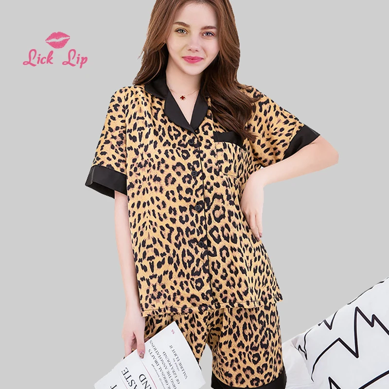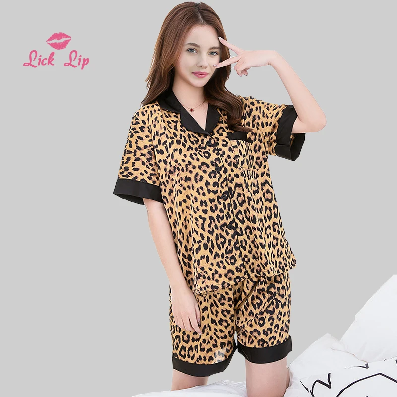 Женская леопардовая Пижама Lick губ, шорты, летняя тонкая атласная лед Шелковая пижама, повседневная элегантная Сексуальная женская шелковая пижама, SWD9790-3 2019.8.6