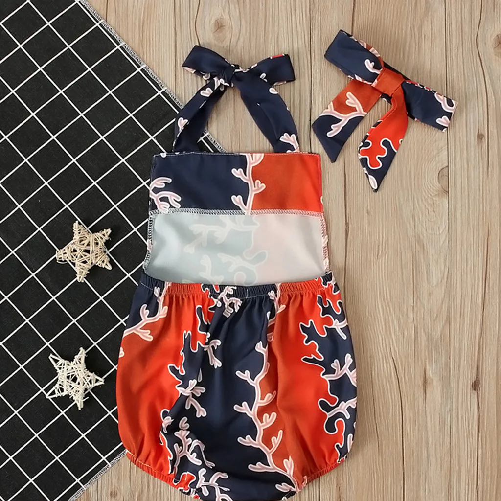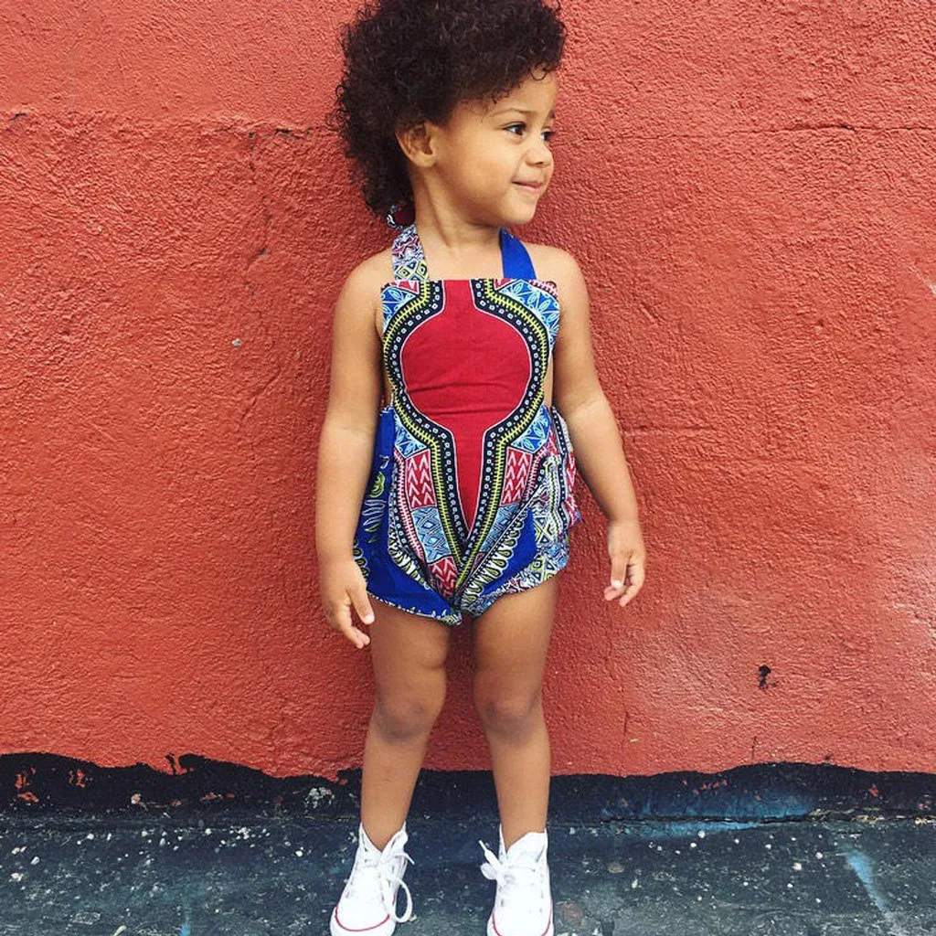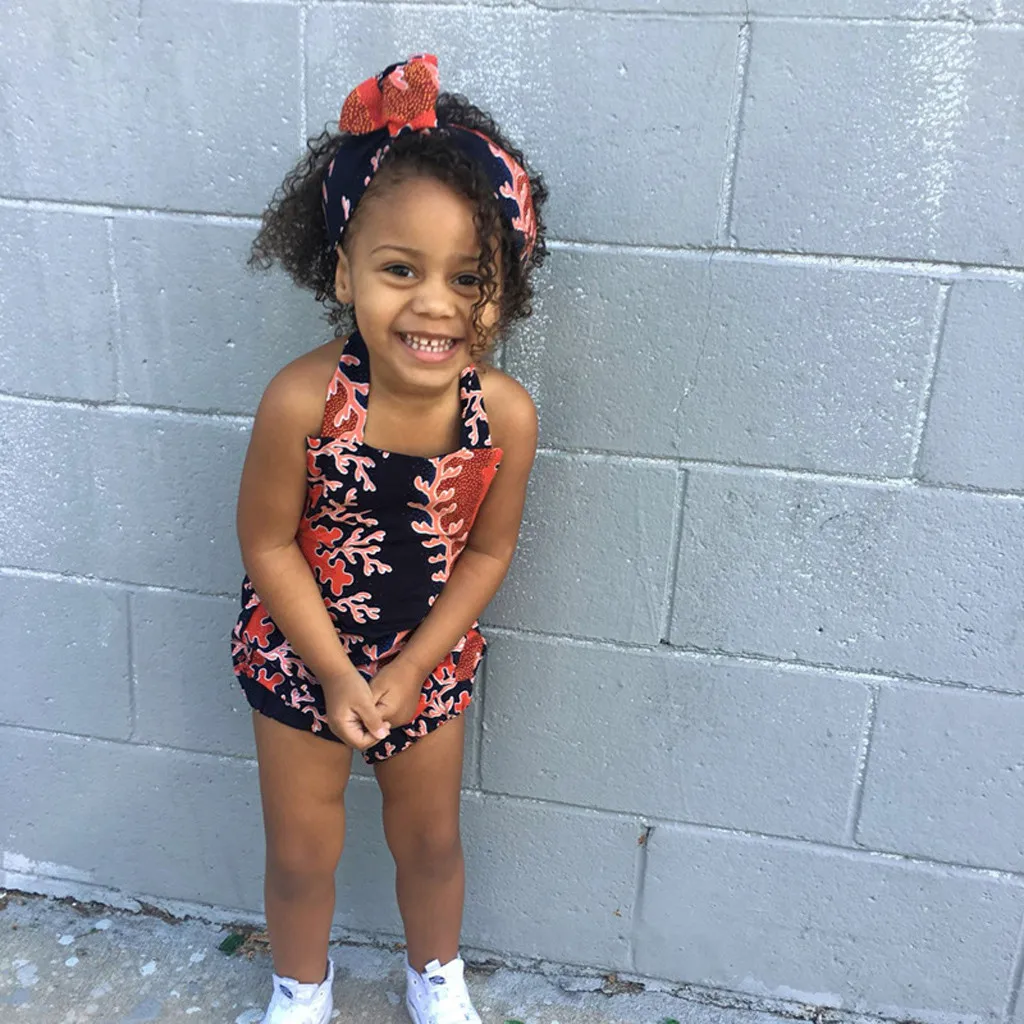 Детский комбинезон с открытыми плечами и принтом в африканском стиле для маленьких девочек; Боди с повязкой на голову; Одежда