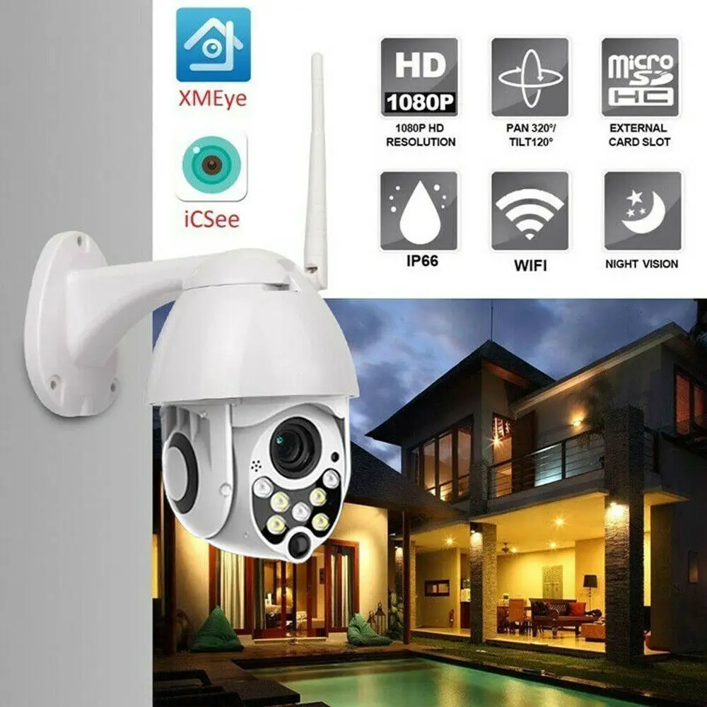 1. Поддержка 1080P 7LED PTZ Мини WIFI наружная купольная домашняя ip-камера безопасности Беспроводная HD 2MP CCTV Onvif Водонепроницаемая камера ночного видения полноцветная камера для обнаружения движения 1-128G TF карта(Не входит в комплект)