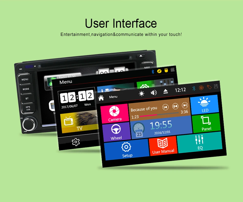 1. Особенности: dvd-плеер, MP3-плееры, Bluetooth, встроенная GPS навигация, радио тюнер, сенсорный экран, сабвуфер, задняя камера, встроенный микрофон, USB ,SD, игра, управление рулевым колесом (за исключением сиденья автомобиля. Если ваш автомобиль находится на сидении, он не поддерживает управление рулевым колесом) 2. Радио 2din 6,2 дюймов сенсорный экран Экран на тонкопленочных транзисторах на тонкоплёночных транзисторах ЖК-дисплей дисплей. Размер изделия 2 din длина 178 мм * ширина 100 мм. Посылка включает в себя рамку, добавьте Размер рамки 187*117 мм 3. Встроенный gps-навигатор, Бесплатная карта более 40 видов голосового языка GPS 4. 2 din записывающее устройство для воспроизведения DVD Совместимо с MP3,MP4,WAM,JPEG,CD,DVD-R/RW,DVD-RAM, видео 5. Автомобильный Dvd плеер радио Включают RDS. Доступна для любого рынка (Европа/Австралия/Южная Америка/Северная Америка/Россия/Япония/и т. Д.) FM частота: 75,0-108MH AM частота: 522-1620 кГц 6. 2 Din GPS более 12 видов языков: русский/английский/французский/немецкий/итальянский/испанский/португальский/арабский/Иврит/тайский/китайский/чешский язык И т. д. ........... 7. DVD Automotivo загрузки Логотип: Выберите Встроенный 50 видов авто Логотип 8. 2din автомобильный аудио опционально (требуется дополнительная оплата): цифровой телевизор, DVR, специальный кабель, датчик парковки 9. Бесплатный подарок: Задняя камера и Карта