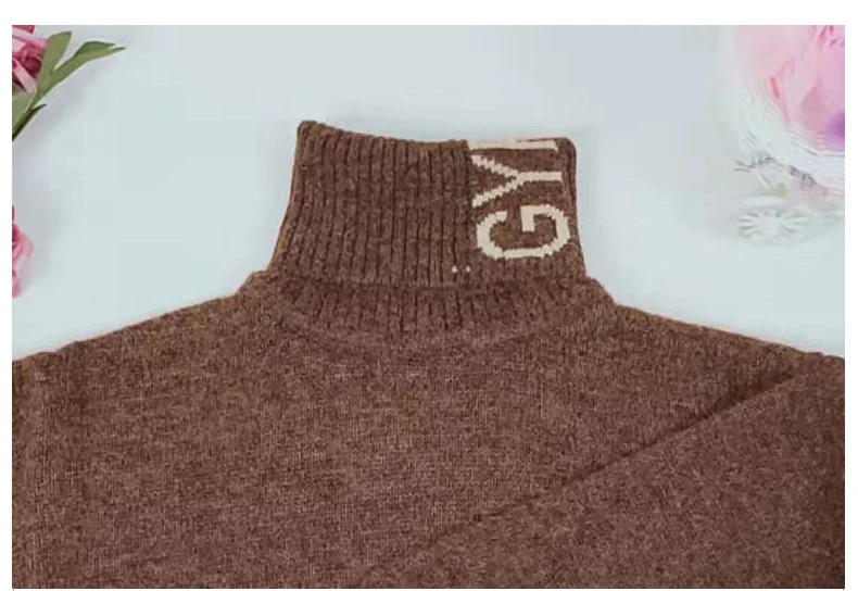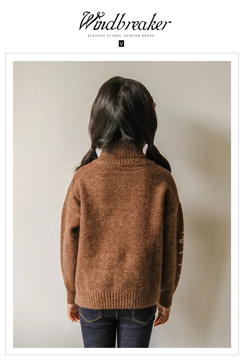 Детские плотные теплые свитера с высоким воротником; Осенне-зимний вязаный свитер для девочек; Повседневный пуловер для крупных детей; Вязаная одежда коричневого цвета для подростков; От 6 до 14 лет