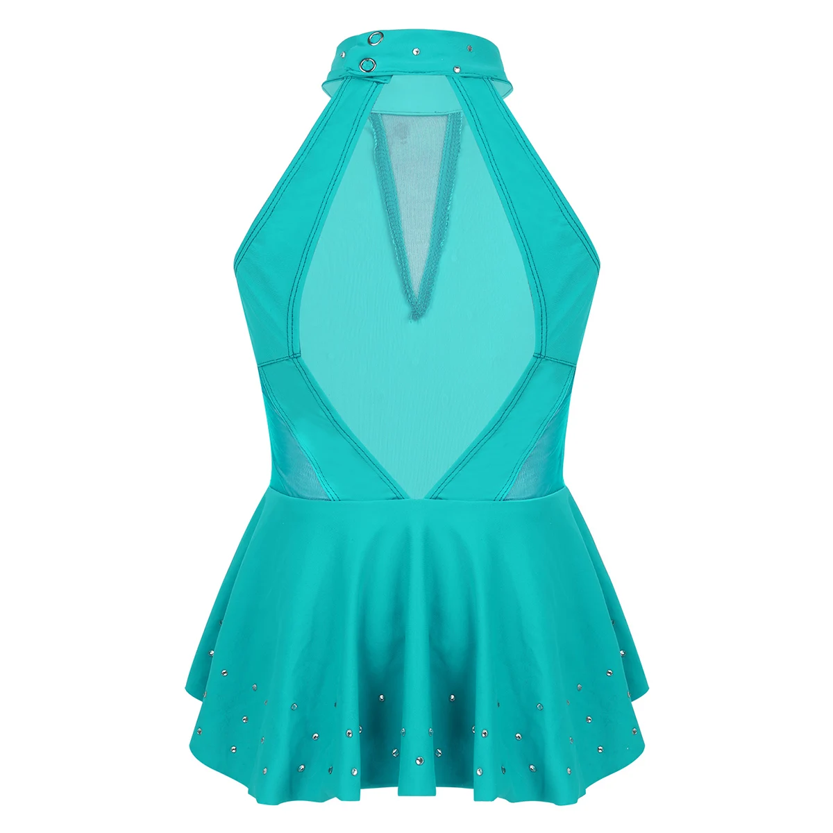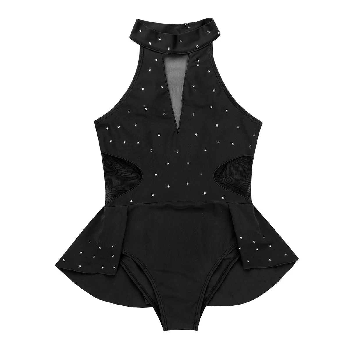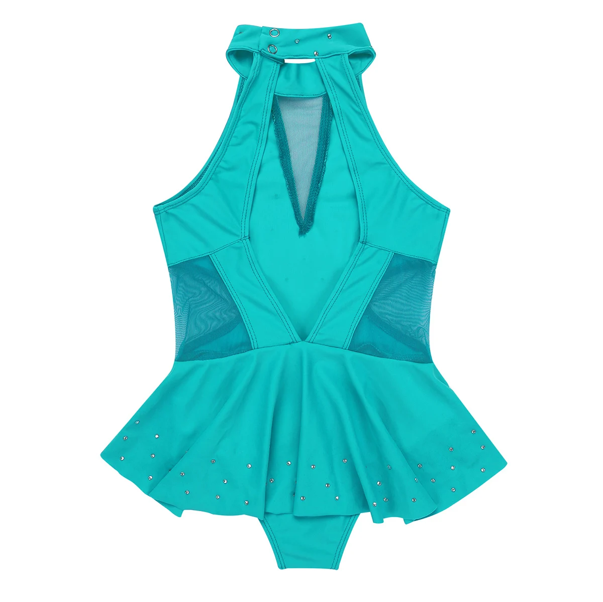 Leotard dress is made of polyester, mesh and rhinestone material, hand wash.