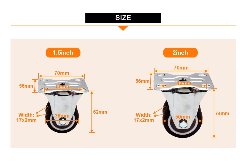 Description2pcs Fixed Furniture Caster Wheels 1.5/2inch TPE Super Mute Wheel Casters Anti-wrap Cradle Furniture Wheel with Bearing