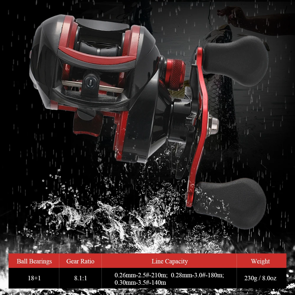 Эта Рыболовная катушка отливки приманки имеет шариковые подшипники 18 + 1 и сверхскоростное Передаточное отношение 8,1: 1, что делает ее мощной рыболовной снастью для рыболовов.