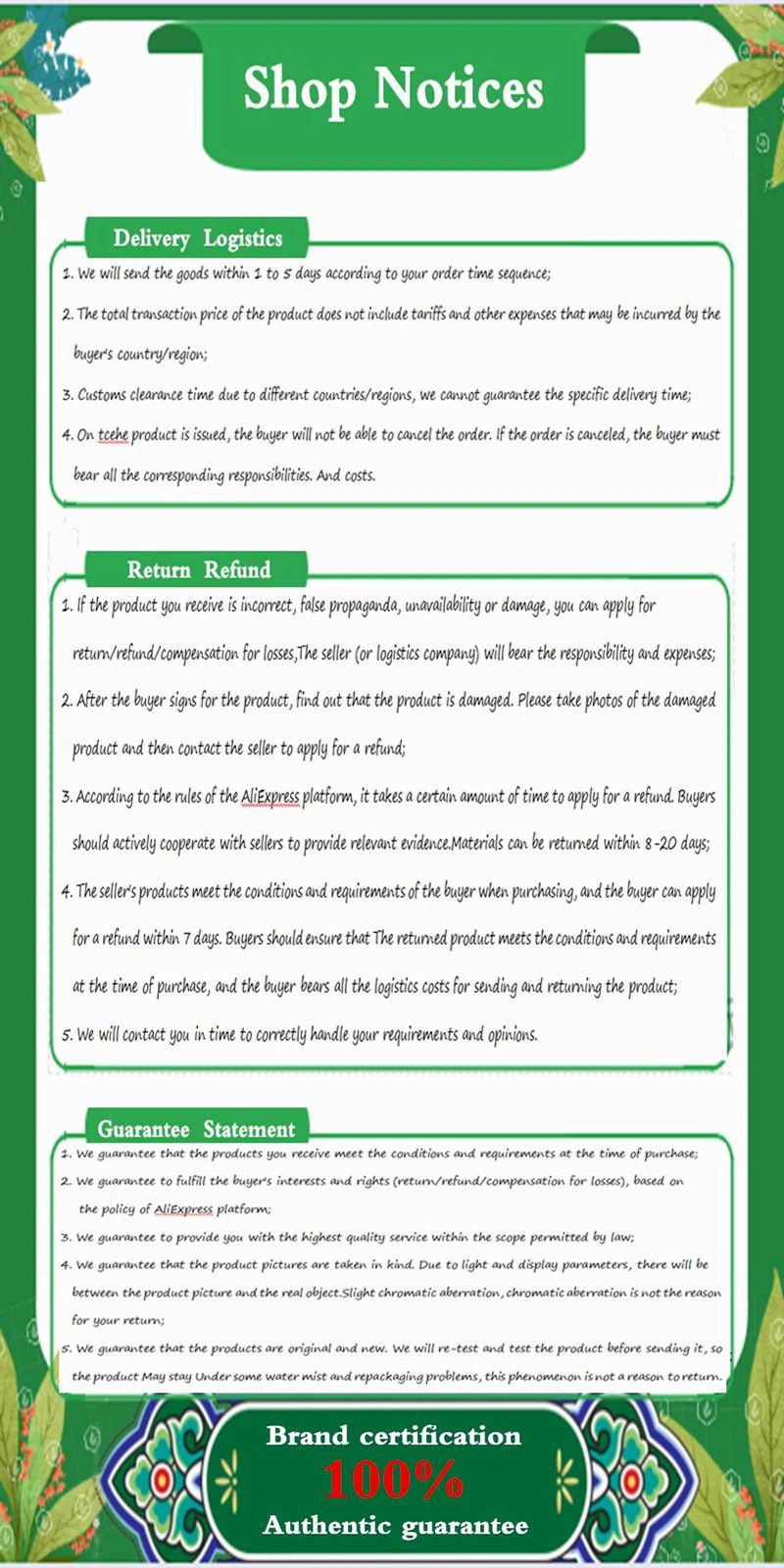 Доставка и логистика: 1. Мы отправим товар в течение 1-5 дней в соответствии с вашим временем заказа; 2. Общая транзакционная цена продукта не включает в себя пошлины и другие расходы, которые могут возникнуть в стране/регионе покупателя; 3. Время таможенного оформления из-за различных стран/регионов, мы не можем гарантировать точное время доставки; 4. На tcehe товар выдан, покупатель не сможет отменить заказ. Если заказ отменен, покупатель должен нести все соответствующие ответственность. И затраты. Возврат и возмещение убытков: 1. Если продукт, который вы получили, является неправильной, ложной рекламой, недоступностью или повреждением, Вы можете подать заявку на возврат/возмещение потерь, продавец (или логистическая компания) будет нести ответственность и расходы; 2. После того, как покупатель подает знак на продукт, обнаружите, что продукт поврежден. Пожалуйста, сделайте фотографии поврежденного товара, а затем свяжитесь с продавцом, чтобы подать заявку на возврат средств; 3. В соответствии с правилами платформы AliExpress, это занимает некоторое количество времени, чтобы подать заявку на возврат средств. Покупатели должны активно сотрудничать с продавцами, чтобы предоставить соответствующие доказательства. Материалы могут быть возвращены в течение 8-20 дней; 4. Товары продавца соответствуют условиям и требованиям покупателя при покупке, и покупатель может подать заявку на возврат средств в течение 7 дней. Покупатели должны убедиться, что возвращенный товар соответствует условиям и требованиям во время покупки, и покупатель несет все логистические расходы по отправке и возврату товара; 5. Мы свяжемся с вами вовремя, чтобы правильно обработать ваши требования и мнение. Гарантия и декларации: 1. Мы гарантируем, что товары, которые вы получите, соответствуют условиям и требованиям во время покупки; 2. Мы гарантируем выполнение интересов и прав покупателя (возврат/Компенсация за потери), на основе Политика платформы AliExpress; 3. Мы гарантируем предоставление вам высочайшего качества обслуживания в пределах, разрешенных по законам; 4. Мы гарантируем, что фотографии товара сделаны в натуральном виде. Из-за освещения и параметров дисплея, будет между фотографией продукта и реальным объектом. Небольшая Хроматическая аберрация, Хроматическая аберрация не является причиной вашего возврата; 5. Мы гарантируем, что товары являются оригинальными и новыми. Мы будем повторно тестировать и тестировать продукт перед отправкой, поэтому продукт может оставаться под водой туман и проблемы с переупаковкой, это явление не является причиной для возврата.