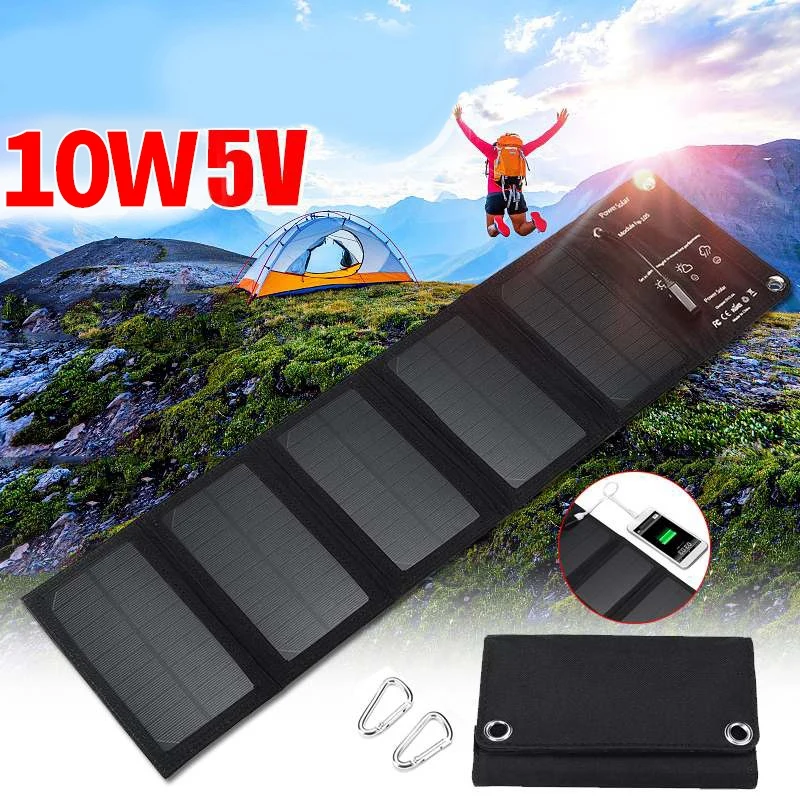 Открытый 10 Вт Водонепроницаемый солнечной энергии складные солнечные батареи зарядное устройство 5 В 2A Usb выход устройства Портативные солнечные панели для смартфонов